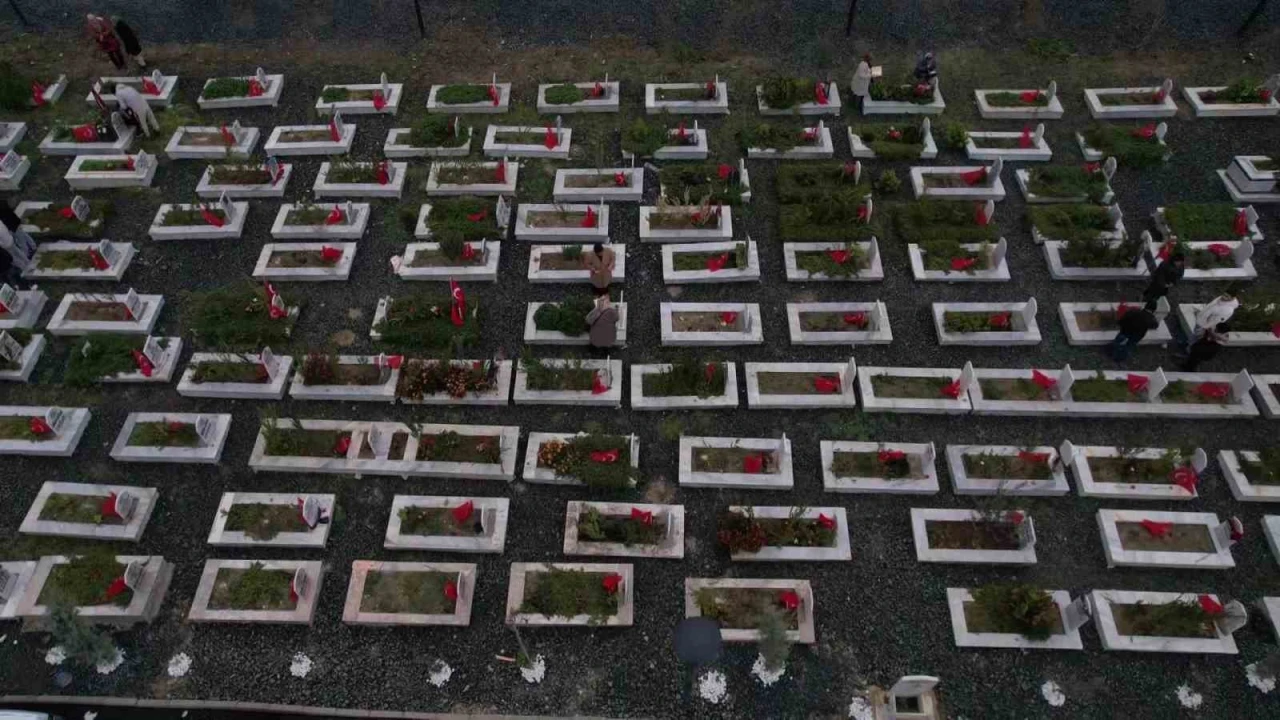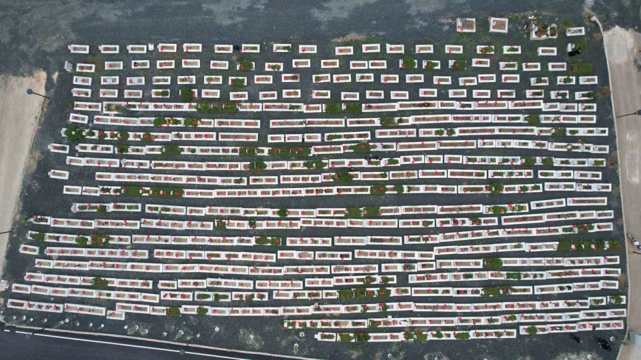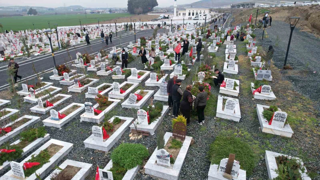 HATAY (İHA) - Hatay’da 6 Şubat depreminin ikinci yılında ‘Narlıca Deprem Şehitleri’ mezarlığında hayatını kaybedenlerin yakınları mezarlığa akın etti. Mezarlıktaki yoğunluk dron ile görüntülendi.