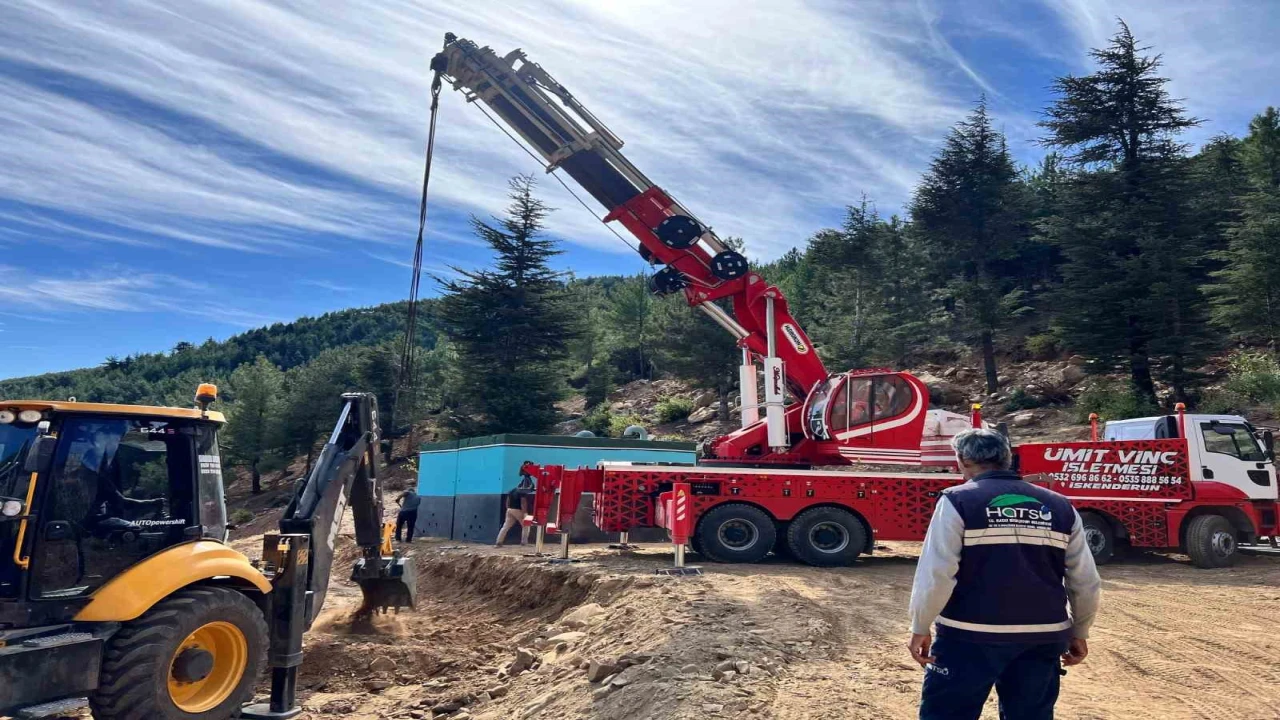 Ekipler, bu kapsamda Hassa ilçesi Arpalıuşağı Mahallesi’nde bulunan deponun yerine 150 metreküp hacimli prefabrik depo yerleştirdi.