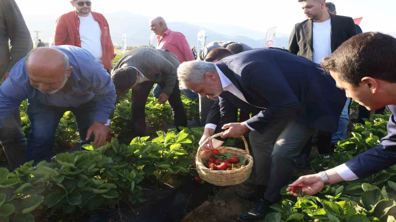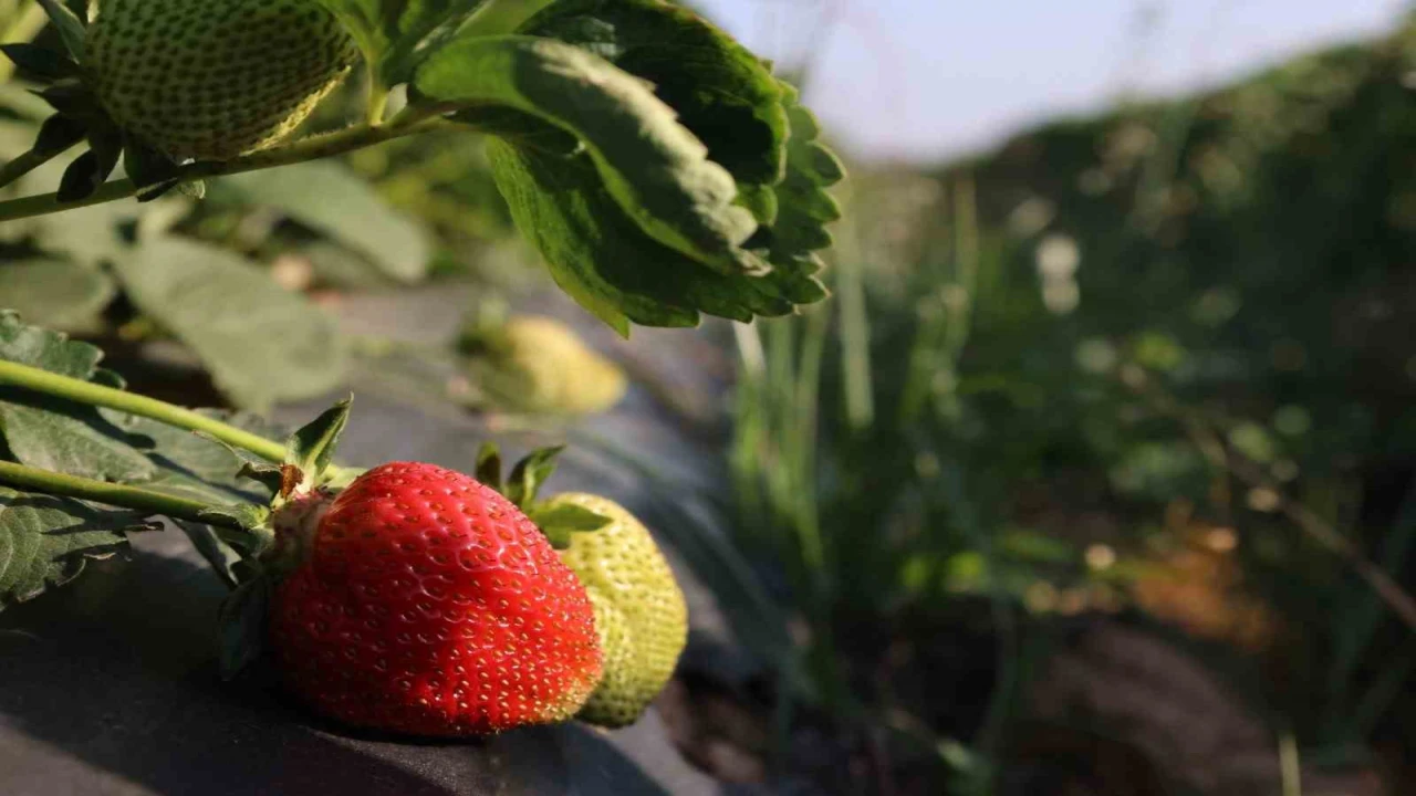 Depremzede çiftçiyi kalkındıracak projede çilek hasadına başlandı