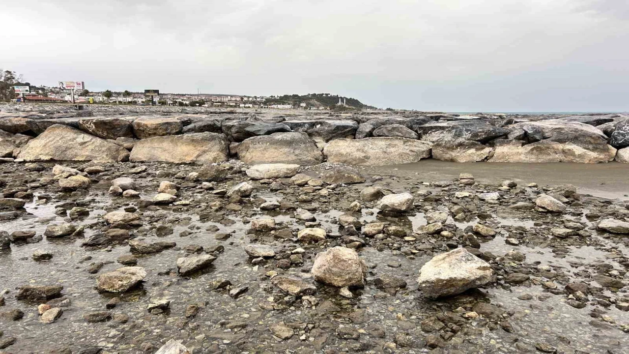 HATAY (İHA) - Hatay’ın Arsuz ilçesinde fırtına nedeniyle denizde 20 metreyi bulan çekilme yaşandı.