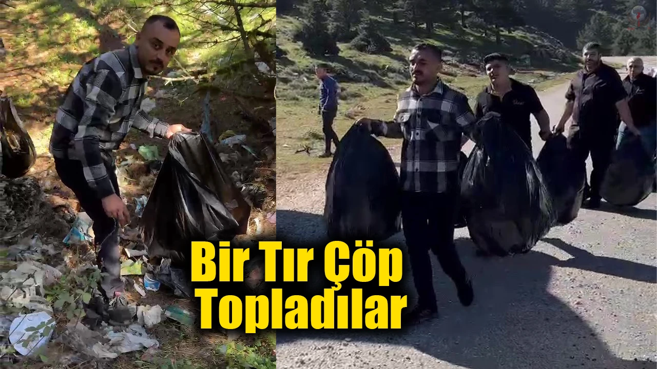 HATAY (İHA) - Hatay'da bir araya gelerek mesire alanında temizlik yapan 15 kişilik grup, 7 saatte bir tır dolusu çöp topladı.