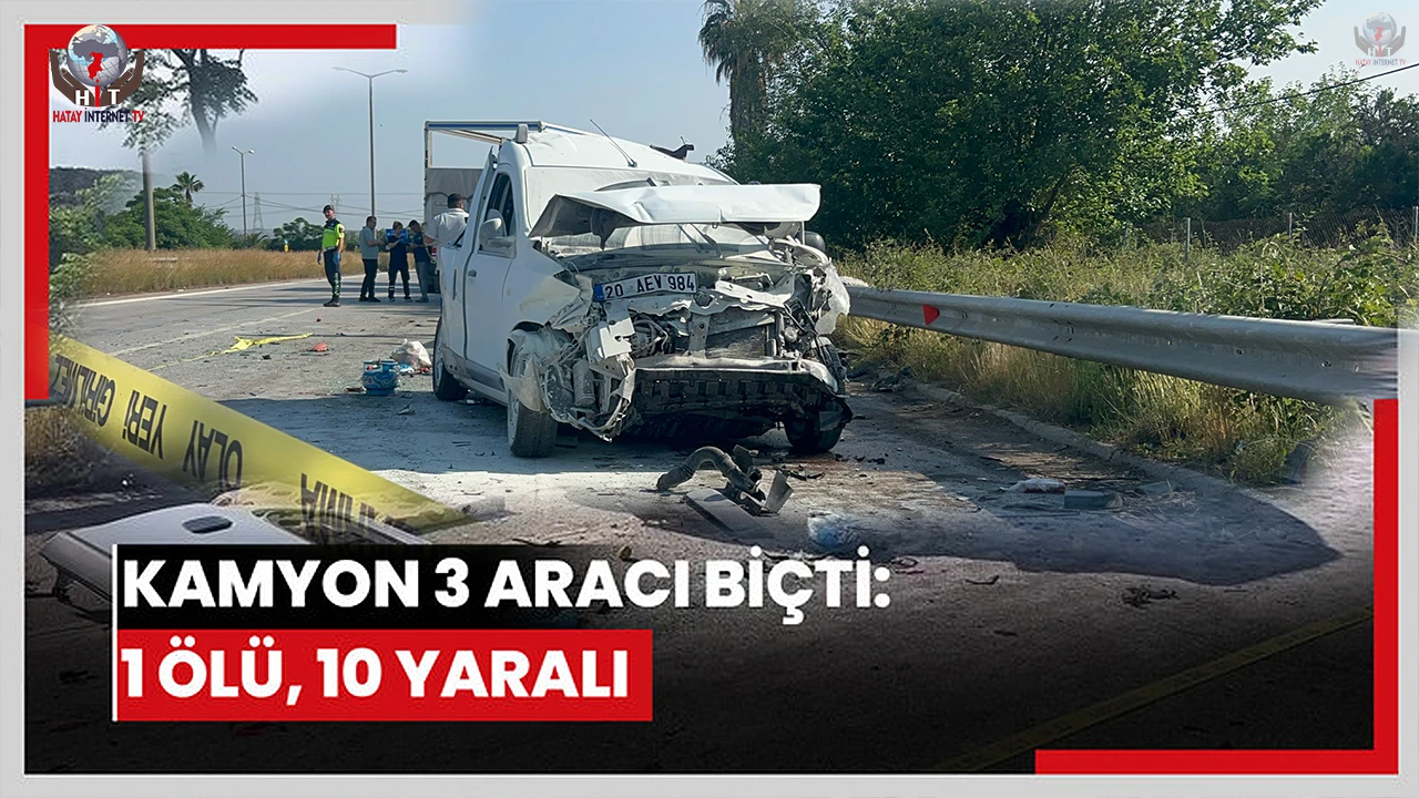 HATAY (İHA) – Hatay’da sürücüsünün direksiyon hakimiyetini kaybettiği kamyon, 3 araca çarptı. Kazada 1 kişi öldü, 10 kişi yaralandı.