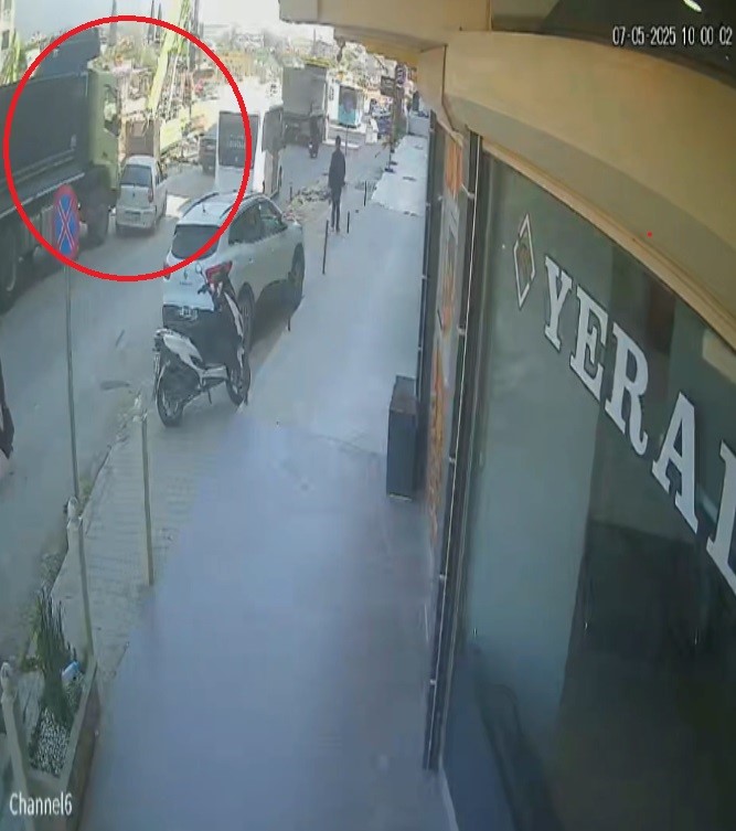 Kaza, Antakya ilçesi Ekinci Mahallesi’nde yaşandı. Aynı istikamette ilerleyen hafriyat kamyonu, kör noktasına gelen otomobili önüne alarak oyuncak araba gibi sürüklemeye başladı. Otomobil sürücüsünün hafif yaralandığı kazanın arından kamyon sürücüsü durmayarak yoluna devam etti. Kaza anıysa çevrede bulunan iş yerinin güvenlik kamerasına yansıdı. Görüntülerde; otomobilin bir anda kamyonun önünde kalarak sürüklendiği görüldü.