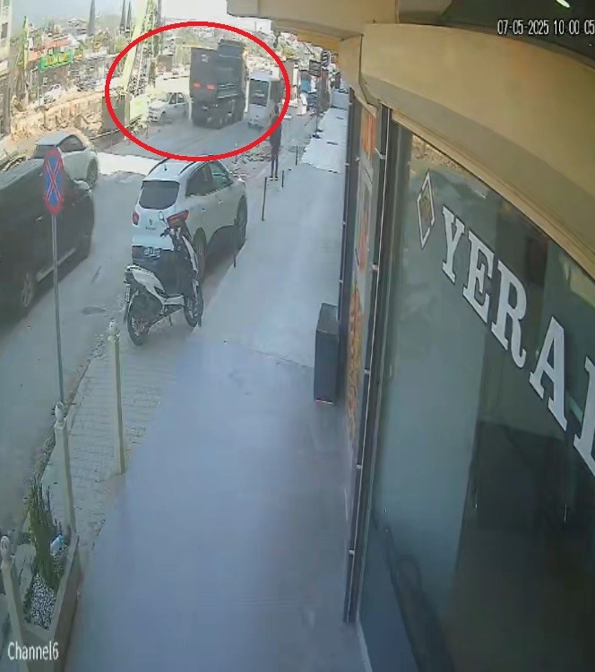 Hatay’da hafriyat kamyonunun kör noktasına gelen otomobilin oyuncak araba gibi sürüklendiği anlar kameraya yansıdı. Kamyon sürücüsünün kazanın ardından durmadan gitmesiyse dikkat çekti.