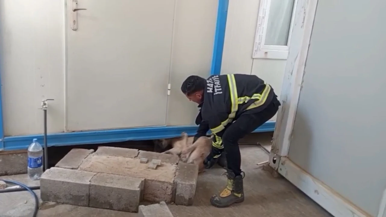 Hatay’da konteynerin altına sıkışarak mahsur kalan köpek, itfaiye ekiplerinin müdahalesiyle kurtarıldı.