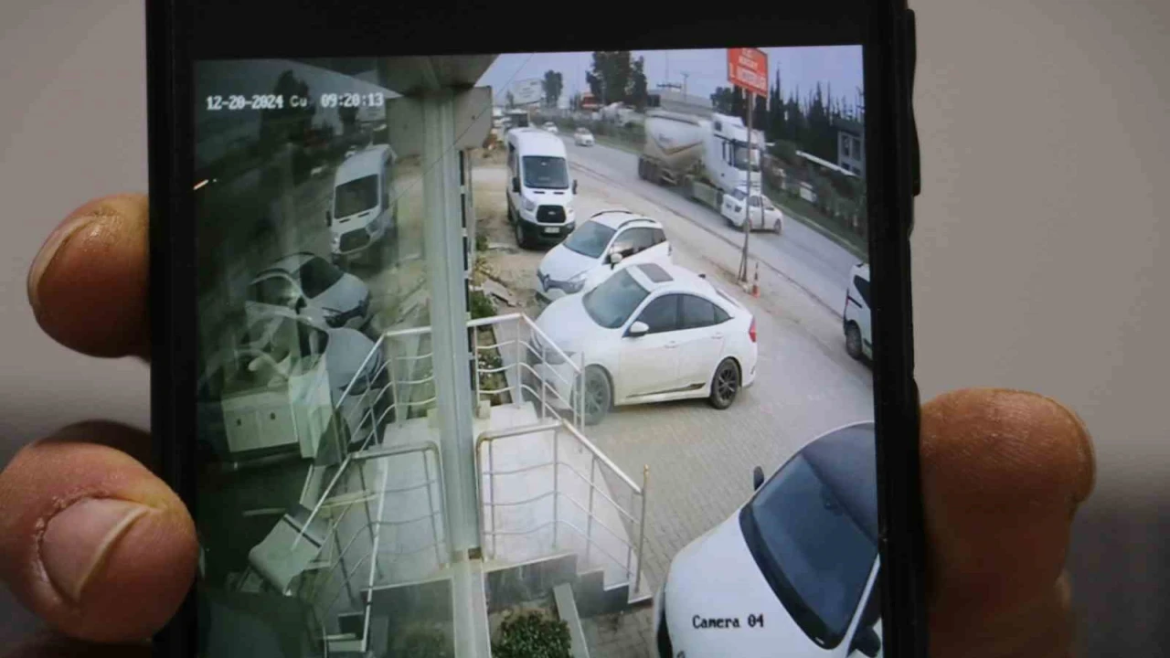 Kaza, Antakya - İskenderun yolu Güzelburç Mahallesi mevkiinde yaşandı. Aynı istikamette ilerleyen Mercedes Benz marka beton mikseri, ışıkların yanmasıyla birlikte Türker Özkaya idaresindeki 34 RN 5762 plakalı otomobili önüne kattı. Korku dolu anların yaşandığı olayda beton mikseri, Özkaya ve personelinin içerisinde olduğu otomobili yaklaşık 150 metre sürükledi. Film sahnelerini aratmayan kaza anbean güvenlik kamerasına yansıdı.