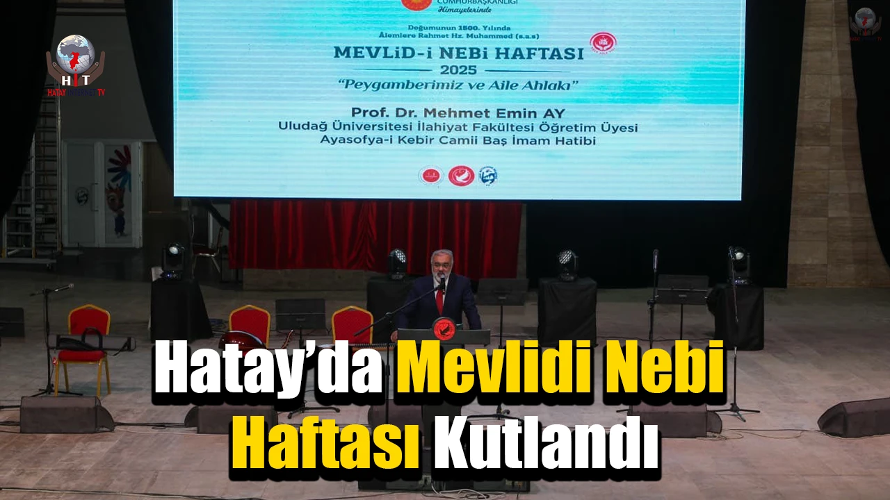 HATAY’DA MEVLİDİ NEBİ HAFTASI DOLAYISIYLA PROGRAM DÜZENLENDİ. PROGRAMDA; AYASOFYA-İ KEBİR CAMİİ BAŞ İMAM HATİBİ PROF. DR. MEHMET EMİN AY, "AİLE PEYGAMBERİMİZLE HUZUR BULDU" SUNUMU GERÇEKLEŞTİRDİ.