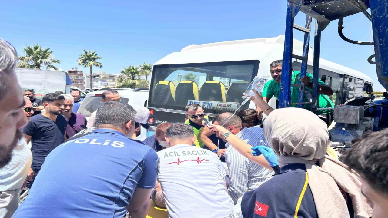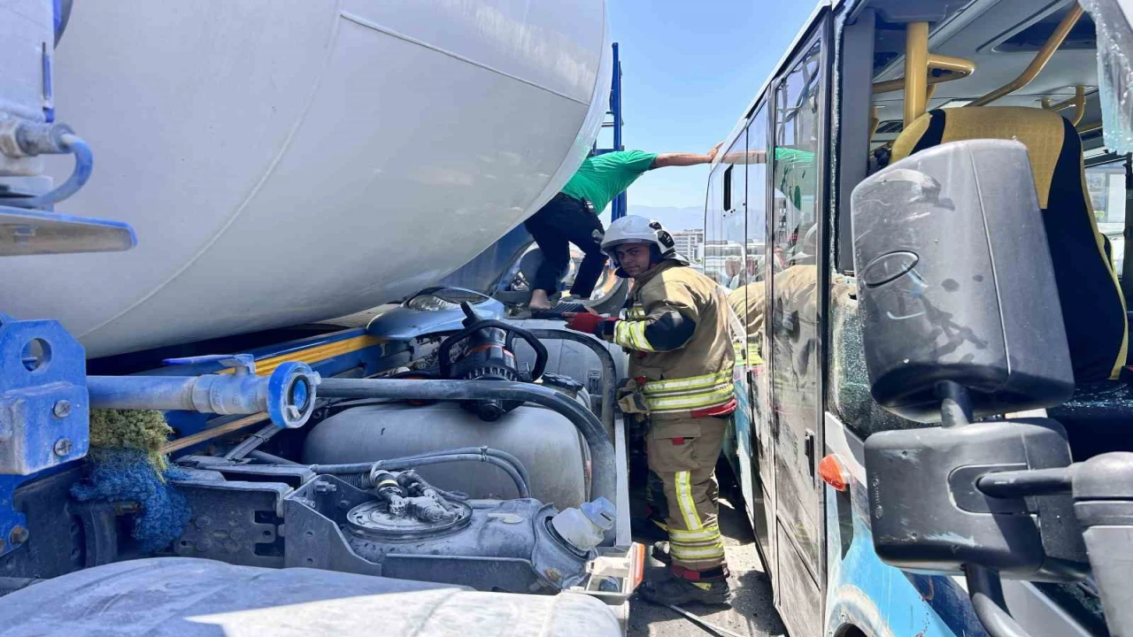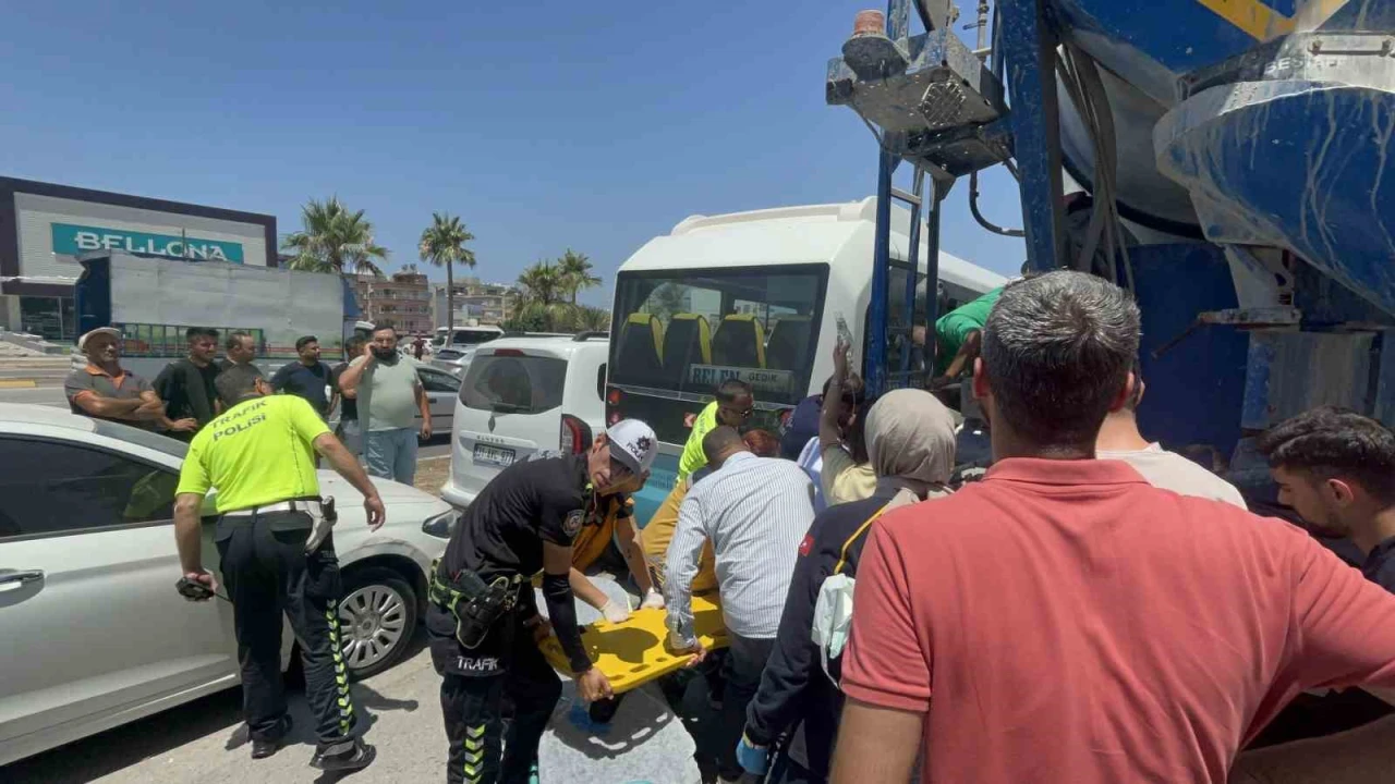 Hatay’ın İskenderun ilçesinde minibüs ile beton mikseri arasında kalan motosiklet sürücüsü yaralandı.