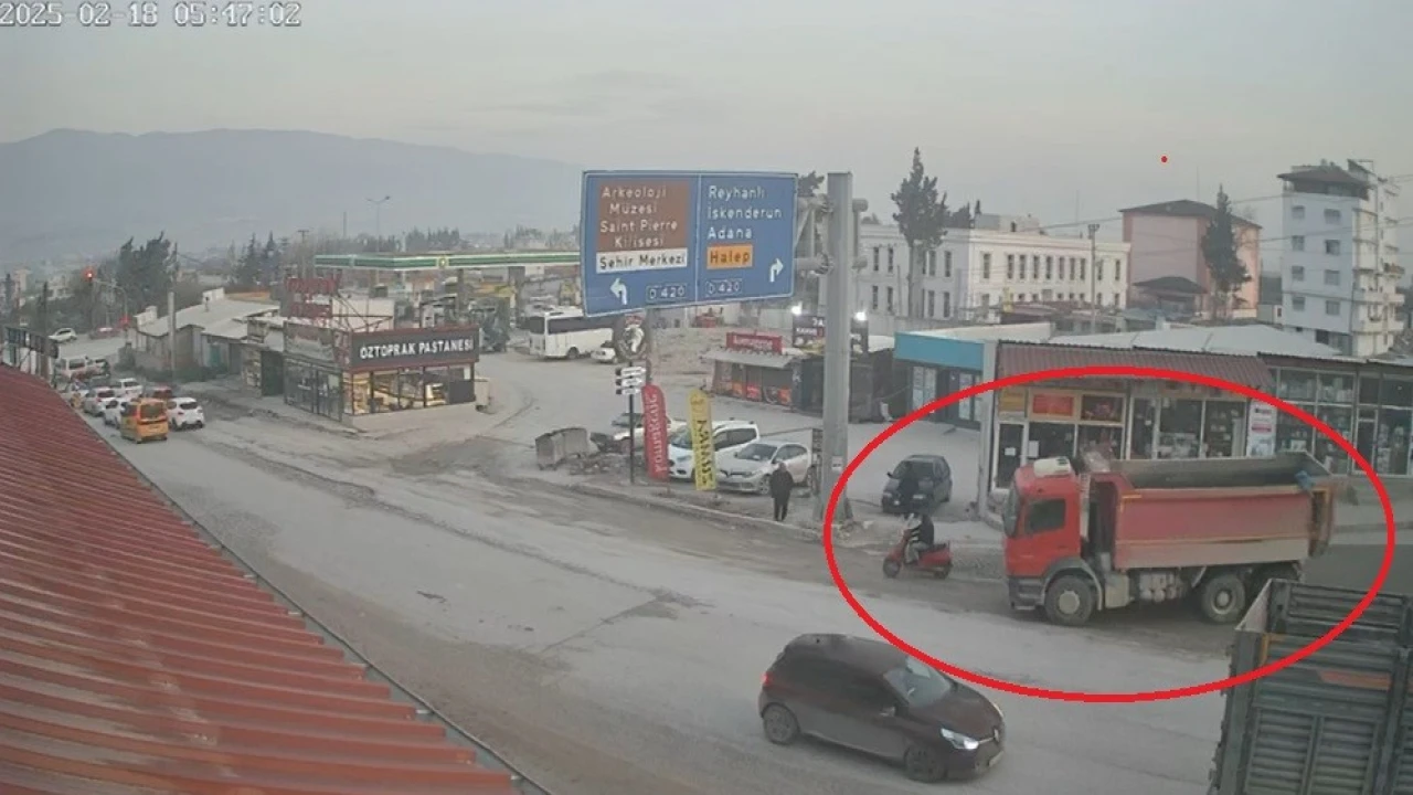 Kaza, Antakya ilçesi Narlıca Mahallesi’nde yaşandı. Trafikte seyir halde olan Hüseyin İlhanlı idaresindeki motosiklet, kavşakta R.T. yönetimindeki kamyonun altında kaldı. Kazada kamyonun altında ezilen motosiklet sürücüsü İlhanlı, hayatını kaybetti. Motosiklet sürücüsünün kamyonun altında kalarak can verdiği anlar saniye saniye güvenlik kamerasına yansıdı. Kazayı gören vatandaşları 112 Acil Çağrı Merkezi’ne bildirilmesi üzerine olay yerine polis ve ambulans ekipleri sevk edildi.