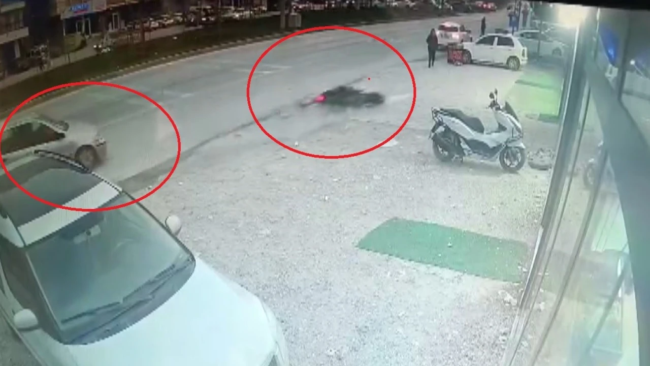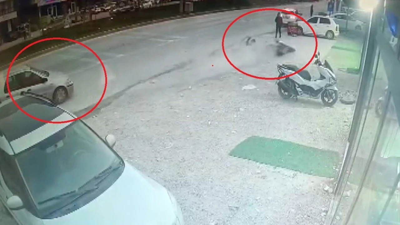 Kaza, Antakya ilçesi çevreyolu Ekinci Mahallesi mevkiinde yaşandı. Çevre yolundan sağa dönüş yapmak isteyen Fiat marka otomobille motosiklet çarpıştı. Motosikletin otomobile ok gibi sağlandığı kazada devrilen motosikletin sürücüsü metrelerce sürüklendi. Motosiklet sürücüsünün yaralandığı feci kaza anbean güvenlik kamerasına yansıdı.