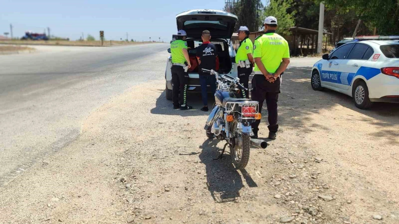 Hatay’da motosikletin üzerine yatarak ölüme meydan okuyan ve o anları sosyal medyada paylaşan şahsa ’trafiği tehlikeye sokmak’ suçundan adli işlem yapıldı, motosikleti otoparka çekildi ve ehliyetine el konuldu.