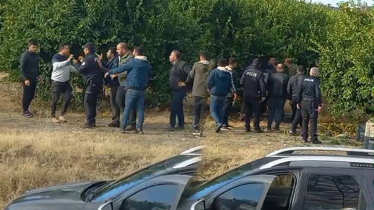 Olay, Erzin ilçe merkezinde yaşandı. İddialara göre; hasadına başlanan narenciyeyi bir üretici, 2 tüccara birden sattı. Hasat için bahçeye gelen 2 üretici arasında yaşanan tartışma kavgaya dönüştü. Kavga çevredeki vatandaşların ve polis ekiplerinin araya girmesiyle sona erdi. Orta yolun bulunduğu bahçede hasat başladı.
