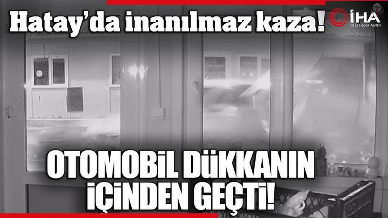 HATAY (İHA) - Hatay'ın Defne ilçesinde otomobilin, prefabrik iş yerinin içinden geçerek başka bir prefabrik iş yerine çarptığı anlar iş yerinin güvenlik kameralarına yansıdı.