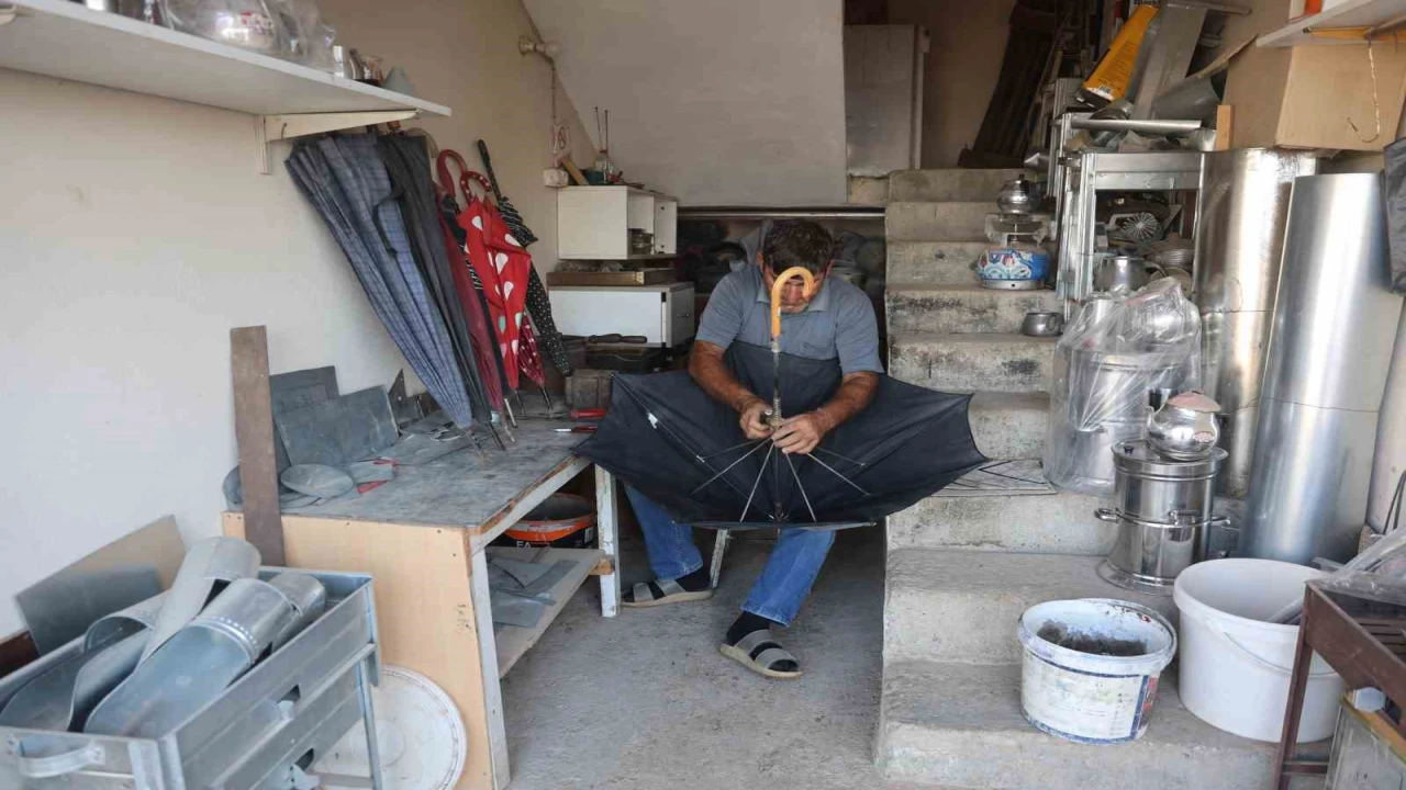 Hatay'da şiddetli yağışlar şemsiye tamircisinde yoğunluğu artırdı