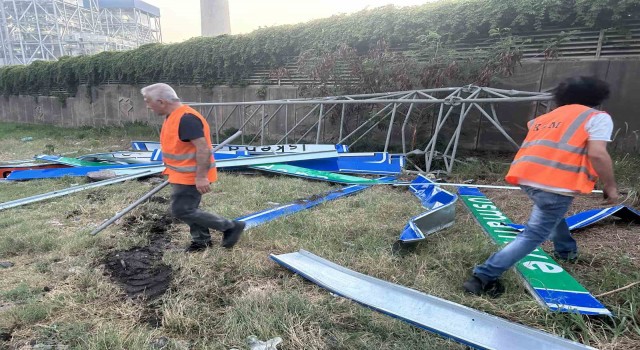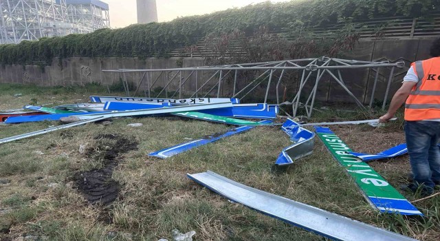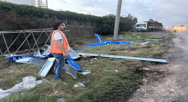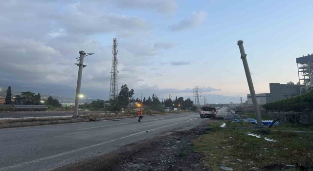 Hatay’ın İskenderun ilçesinde seyir halindeki tırın açık unutulan dorsesi karayollarına ait levhalara çarptı. Tırın trafik levhalarına çarpması sonucu yol trafiğe kapandı.