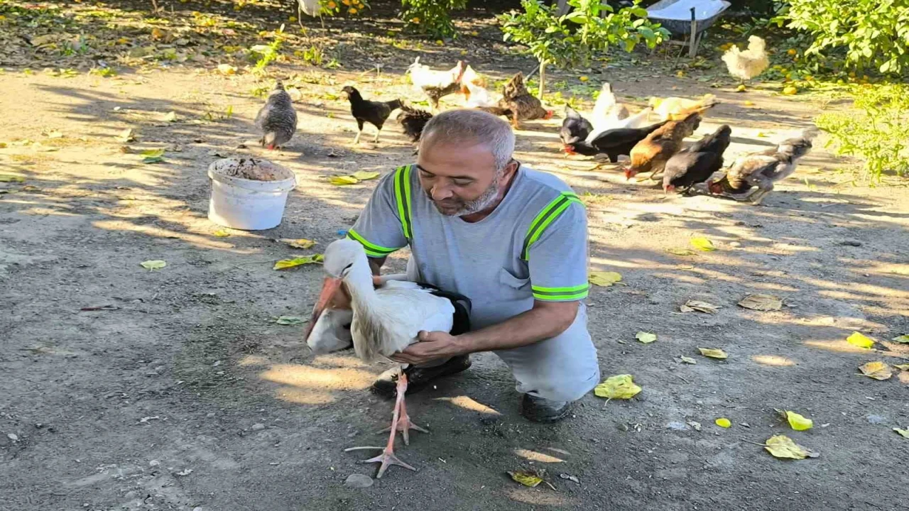 Dörtyol ilçesi Numuneevler Mahallesi’nde yaşayan Yusuf Poyraz, evinin bahçesinde bulduğu leyleğin uçamadığını fark ederek kümeste beslemeye başladı. Leyleği balıkla besleyen Poyraz, kuşu Doğa Koruma ve Milli Parklar Şube Müdürlüğü ekiplerine teslim etti. Ekipler, ilk kontrollerini yaptıkları leyleği rehabilitasyon merkezinde tedavi altına aldı.