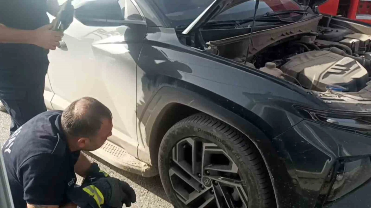 HATAY’DA BİR ARACININ KAPUTUNA GİREN YAVRU KEDİYİ, İTFAİYE EKİPLERİ TELEFONDAN KEDİ SESİ AÇARAK KURTARDI