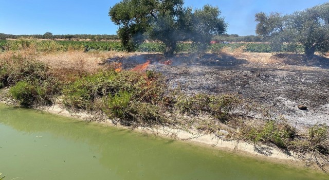 Çıkan yangından sonra zeytinlik alanın bir kısmı zarar gördü.