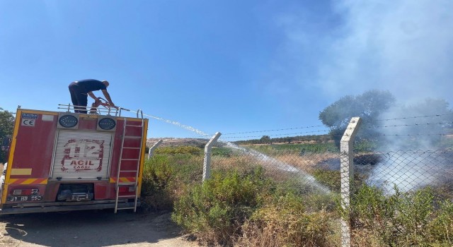 HATAY (İHA) - Hatay’ın Arsuz ilçesinde zeytinlik alanda çıkan yangını itfaiye ekiplerin müdahalesiyle söndürüldü.