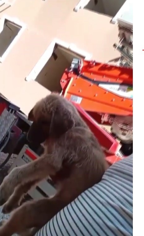 Merdivenlerden çıkamadım ve yardım istedim ama kimse gelmedi. Arka sokakta asansörlü taşıma aracını çağırdım. 5'inci kata çıktım ve yavru köpeğin orada olduğunu gördüm. Köpeği oradan kurtarıp aşağıya indim, sonra hemen kliniğe götürdüm. Klinikte iki gün kaldı.