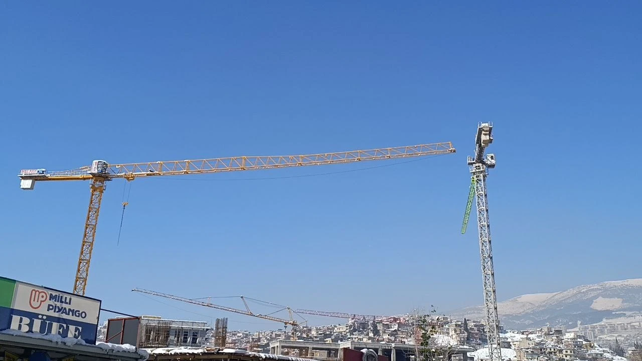 Kahramanmaraş’ta hava sıcaklığının eksilere düşmesiyle birlikte inşaat sektöründe çalışmalar büyük ölçüde durma noktasına geldi. Şantiyelerde işçi faaliyetleri tamamen dururken, iş makineleri ve kule vinçler de olumsuz hava şartları nedeniyle çalışamaz hale geldi.