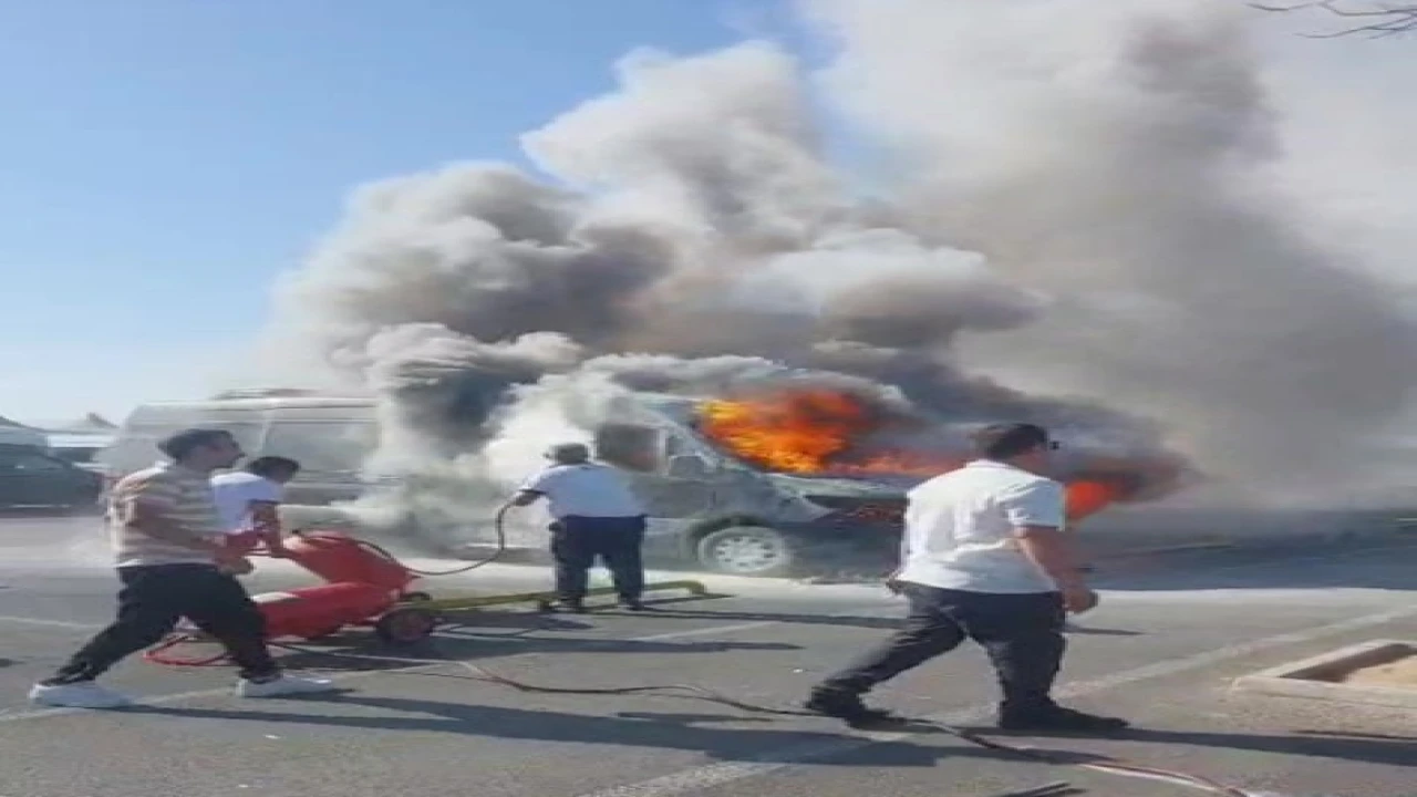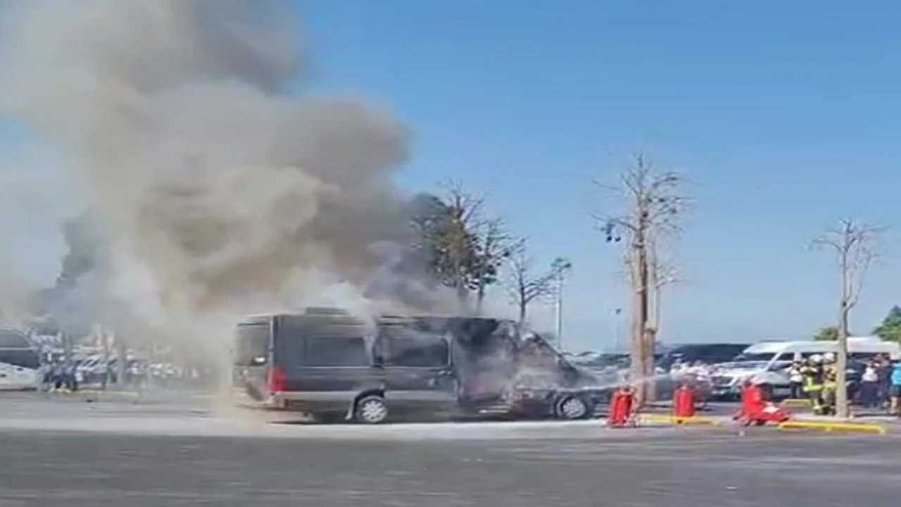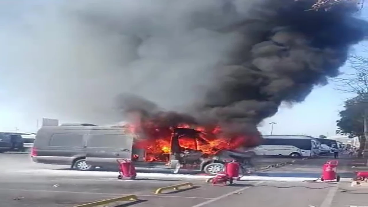 Antalya Havalimanı’nda park halindeki minibüs yandı. Alevler içinde kalan minibüs Havalimanı Kurtarma ve Yangınla Mücadele (ARFF) ekipleri tarafından söndürüldü.