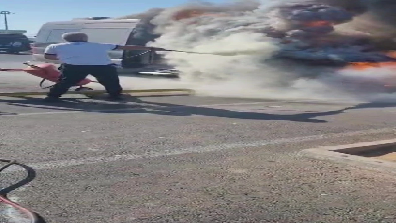 ANTALYA HAVALİMANI'NDA PARK HALİNDEKİ MİNİBÜS YANDI. ALEVLER İÇİNDE YANAN MİNİBÜSE HAVALİMANI KURTARMA VE YANGINLA MÜCADELE (ARFF) EKİPLERİ TARAFINDAN SÖNDÜRÜLDÜ