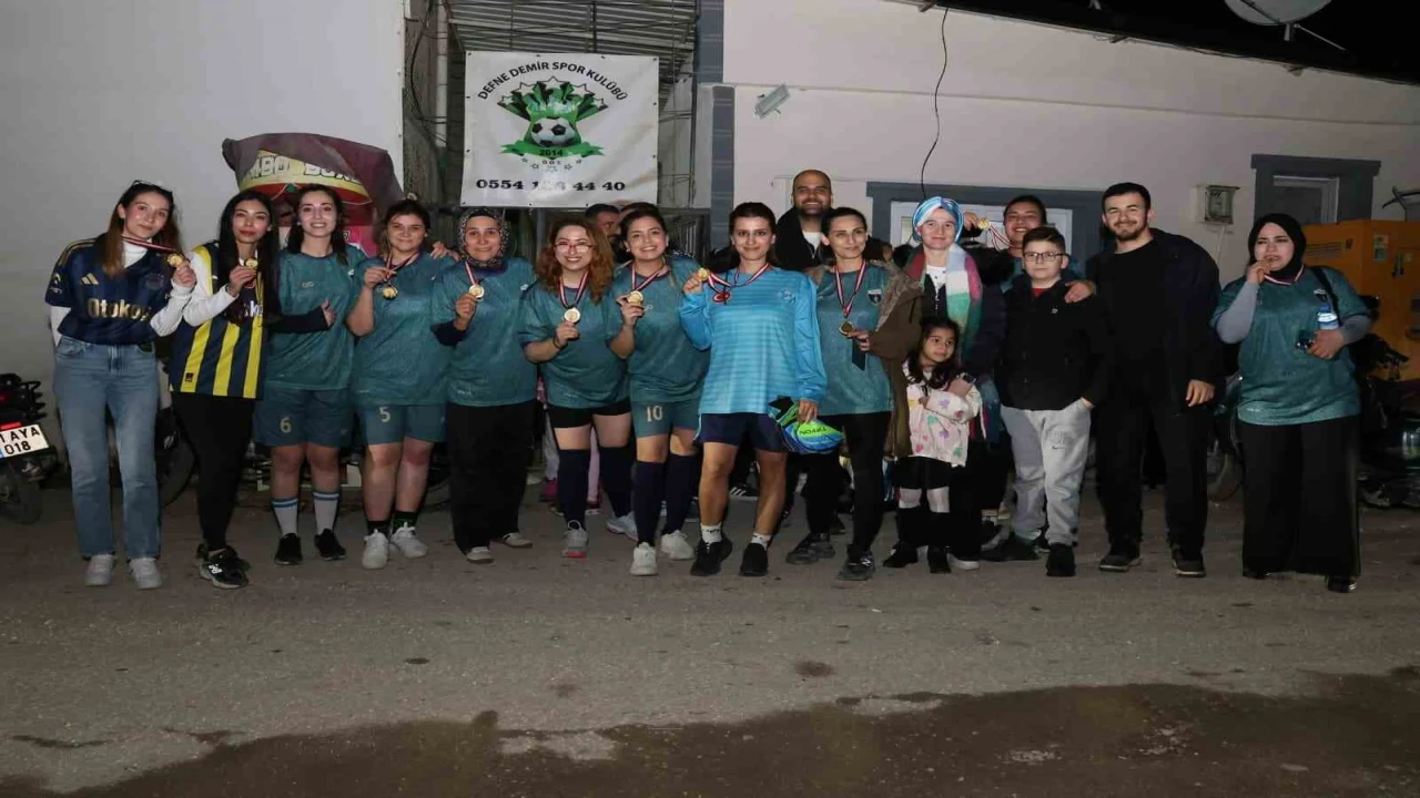 HATAY (İHA) - Hatay'da halı sahada futbol maçı yapan kadınlar, sahadaki mücadeleleriyle erkeklere taş çıkardılar.