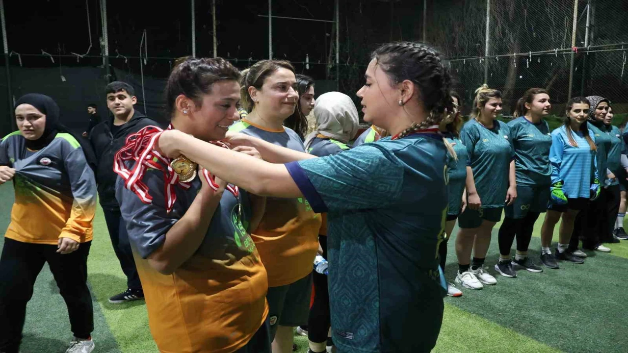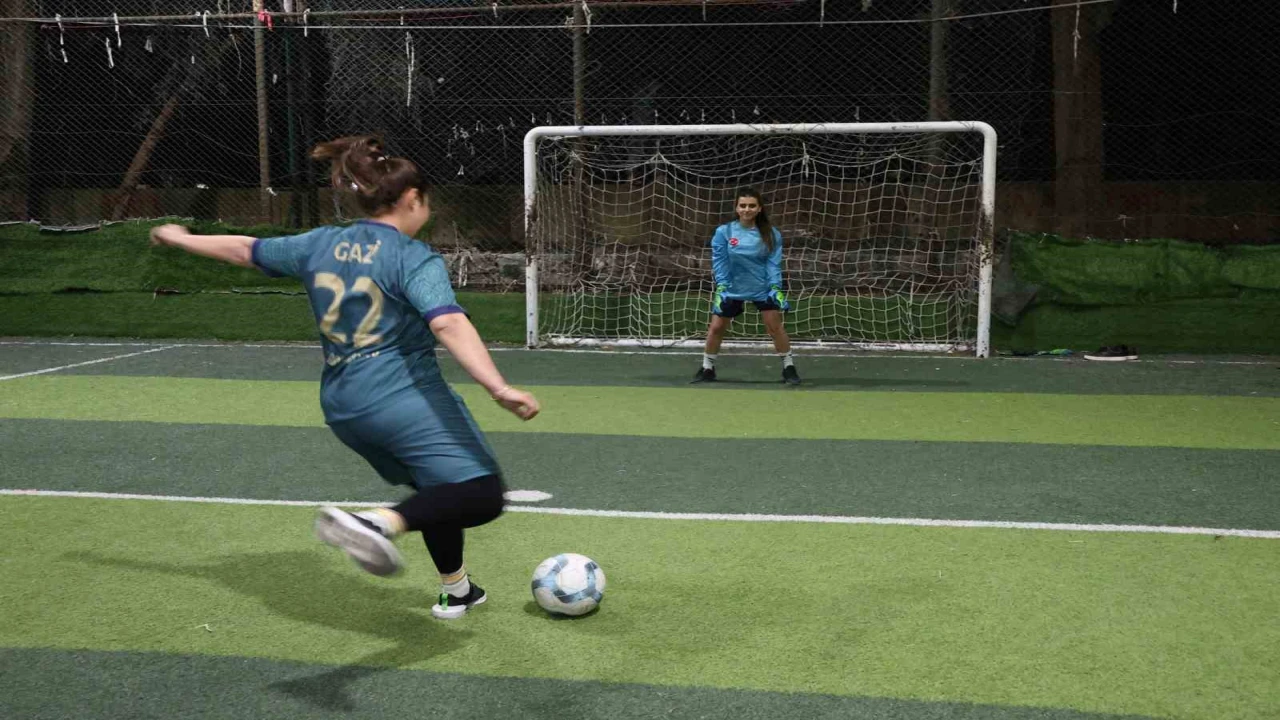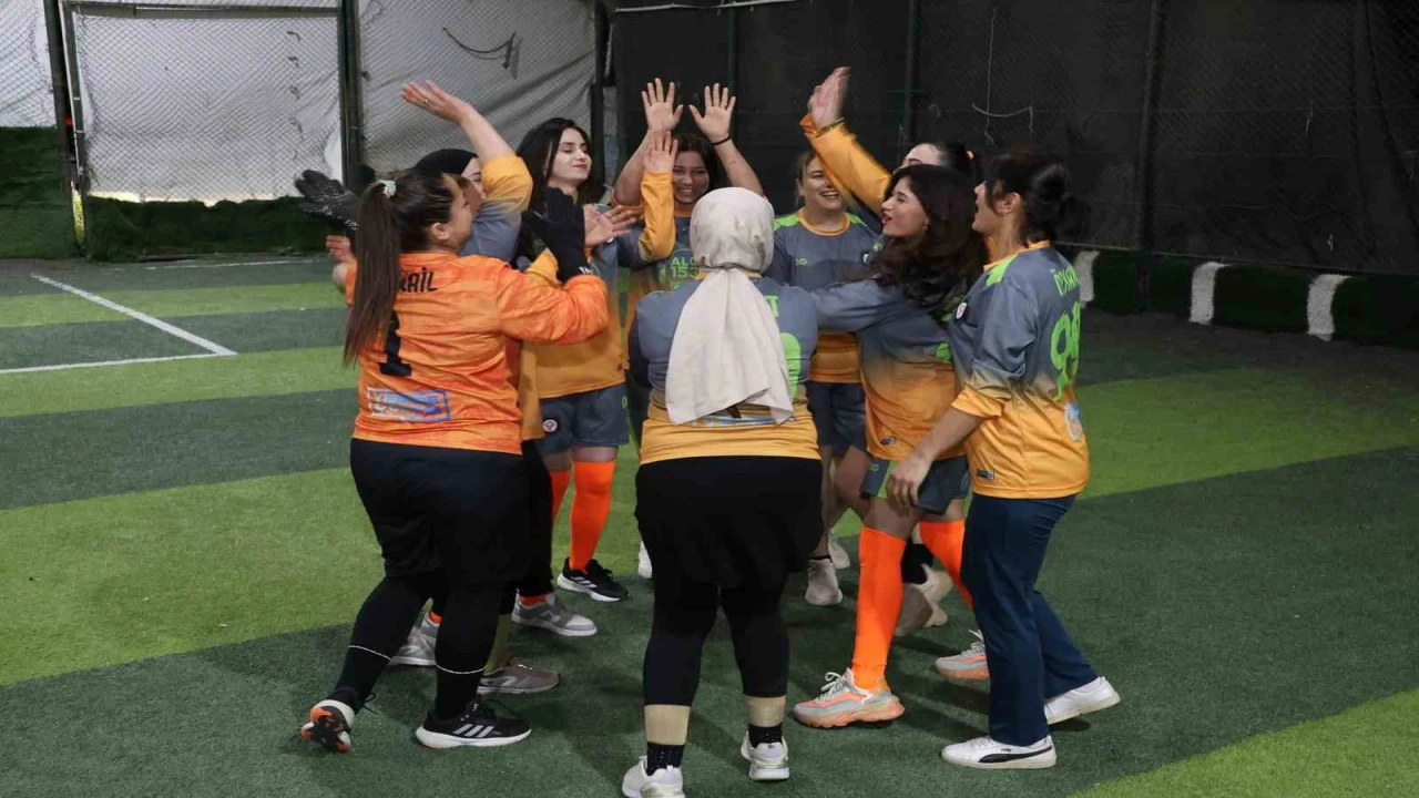 Yeşil sahadaki performanslarıyla erkeklere taş çıkaran kadınlar, halı saha maçında doyasıya eğlendiler