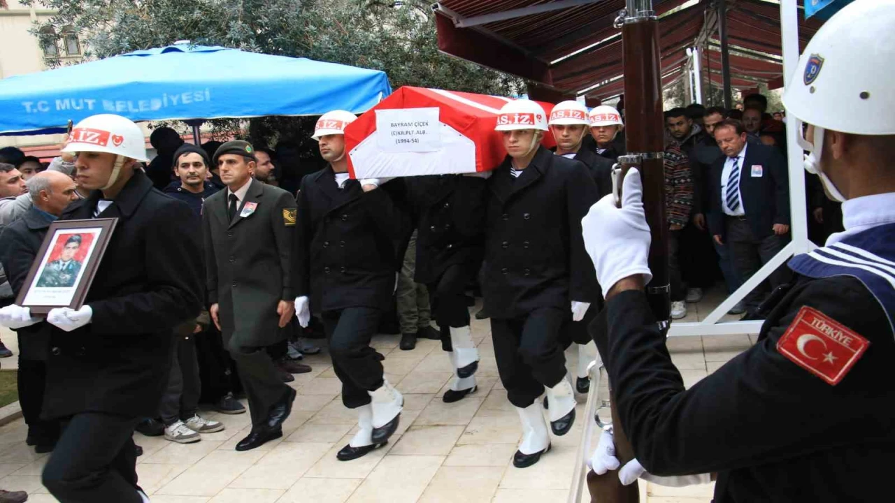 MUĞLA'DA HELİKOPTER KAZASINDA HAYATINI KAYBEDEN GÖREV ŞEHİDİ EMEKLİ ALBAY PİLOT BAYRAM ÇİÇEK, MEMLEKETİ MERSİN'İN MUT İLÇESİNDE ASKERİ TÖRENLE SON YOLCULUĞUNA UĞURLANDI.
