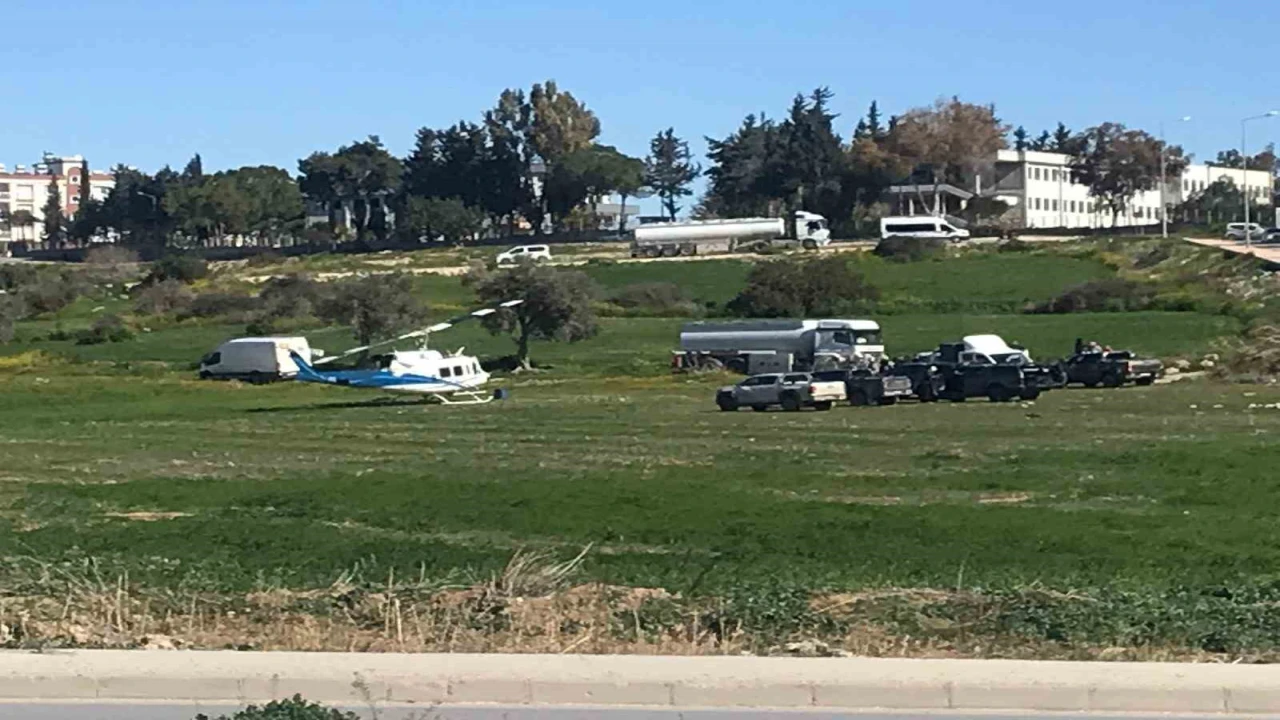 Mersin’in Tarsus ilçesinde boş alana inen bir helikopteri görenler gözlerine inanamadı.