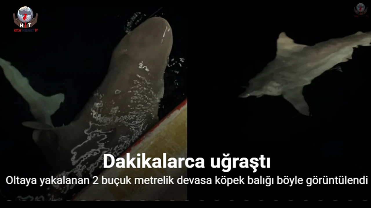 İskenderun ilçesinde teknesiyle Akdeniz’de balık avına çıkan Mehmet Öztürkoğlu’nun oltasına yaklaşık 2 buçuk metre boyunda 70 kilogram ağırlığındaki camgöz cinsi köpek balığı takıldı. Balığın orkinos olduğunu düşünerek dakikalarca mücadele veren ve heyecanla botuna çeken Öztürkoğlu, köpek balığıyla karşılaştı. Verdiği mücadele karşısında üzülen Öztürkoğlu, daha sonra köpek balığını oltadan kurtararak denize bıraktı.