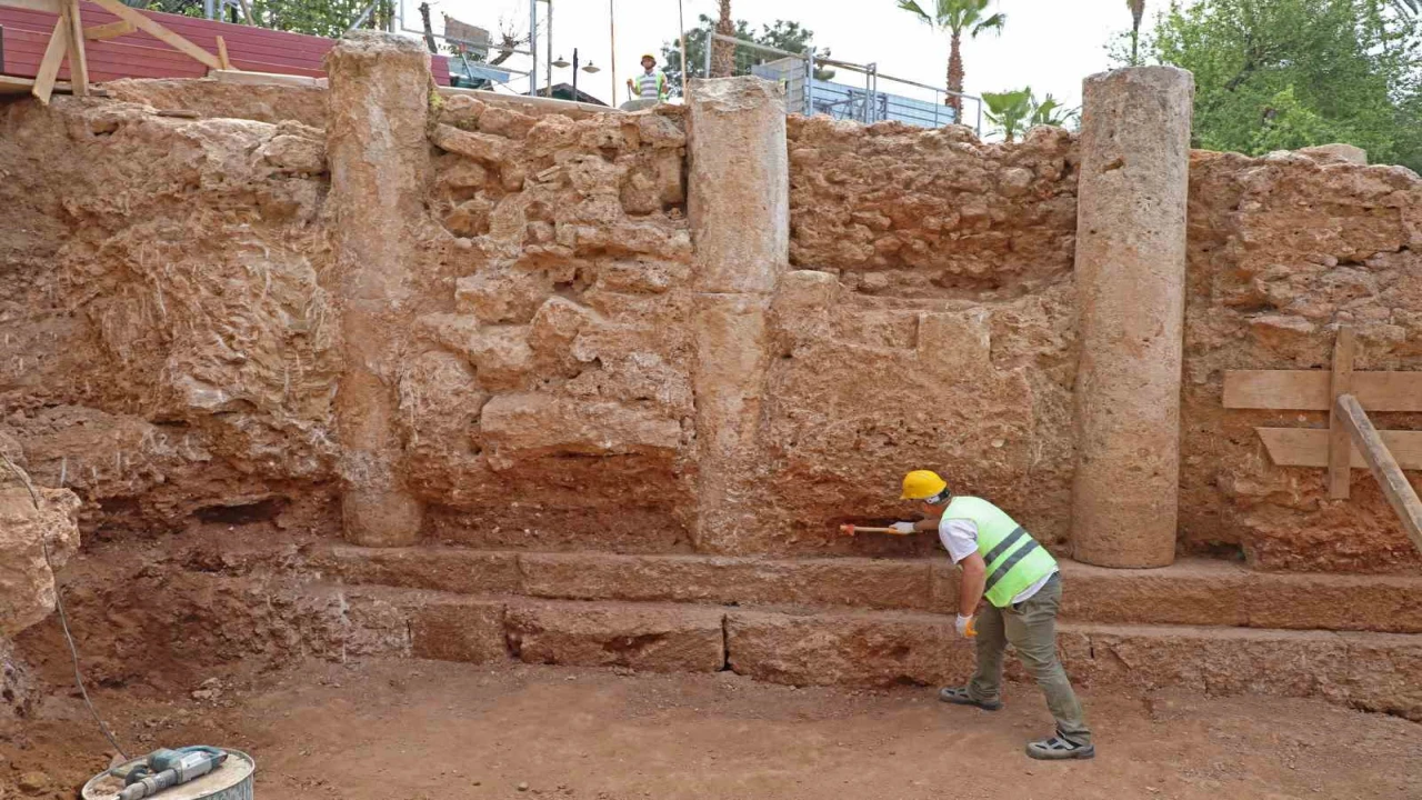 Kulenin güney kısmında gün yüzüne çıkarılarak heyecan oluşturan arkeolojik keşiflerden sütunlu yapının Hadrian Kapısı aksındaki cadde olduğu düşünülüyor. Sütunlu cadde olduğu tahmin edilen yapıda kazı ve konservasyon çalışması sürüyor. Antalya Büyükşehir Belediyesi Fen İşleri Dairesi Başkanlığı tarafından kulenin kuzey ve güney kısmındaki alanın ahşap kaplama ve antik kalıntıların izlenebileceği cam yüzeylerin kaplamaları büyük oranda tamamlandı. Konservasyon işlerinin devam ettiği projede, ziyaretçilerin alana girişini sağlayacak merdivenli alanda çalışmalar sürüyor. Tarihi Hıdırlık Kulesi’nde dış duvar derz dolgu ve kuleyi uzun süre ayakta tutabilecek sağlamlaştırıcı çalışmalar yapıldı.