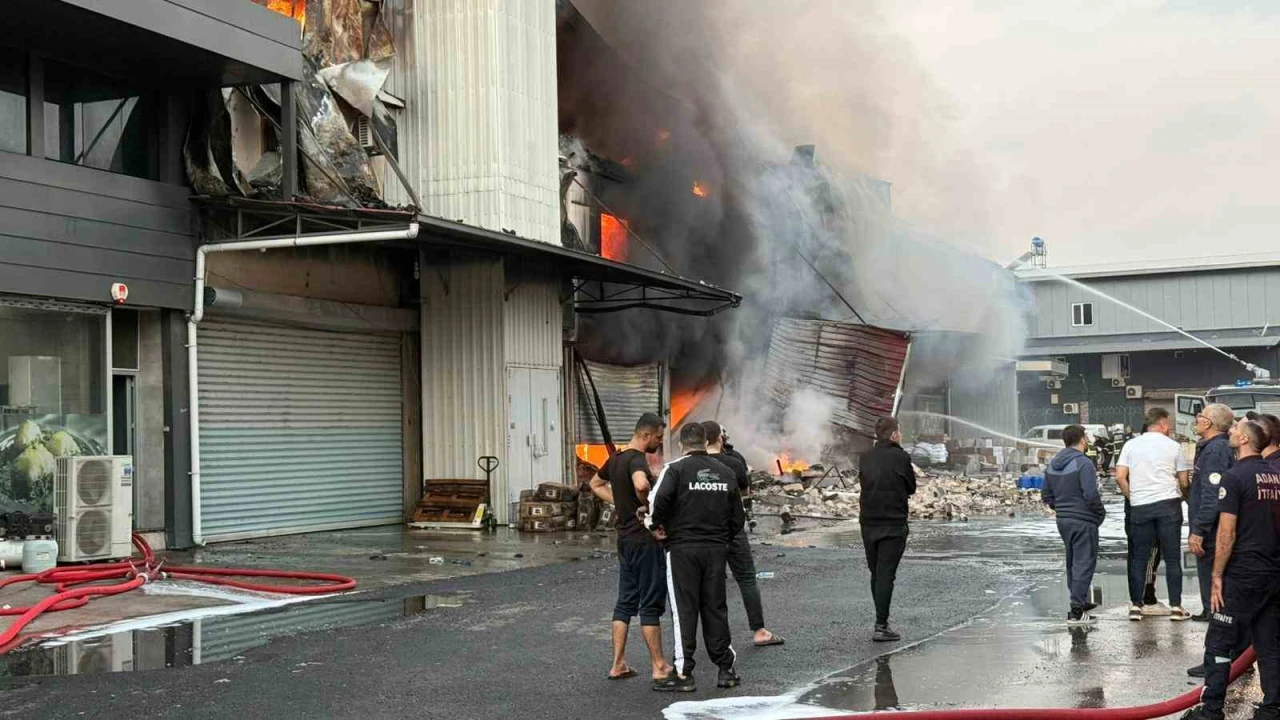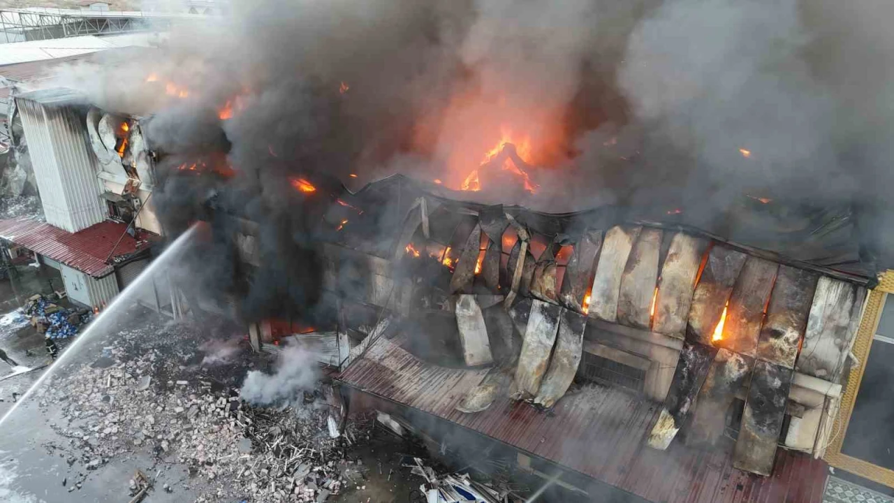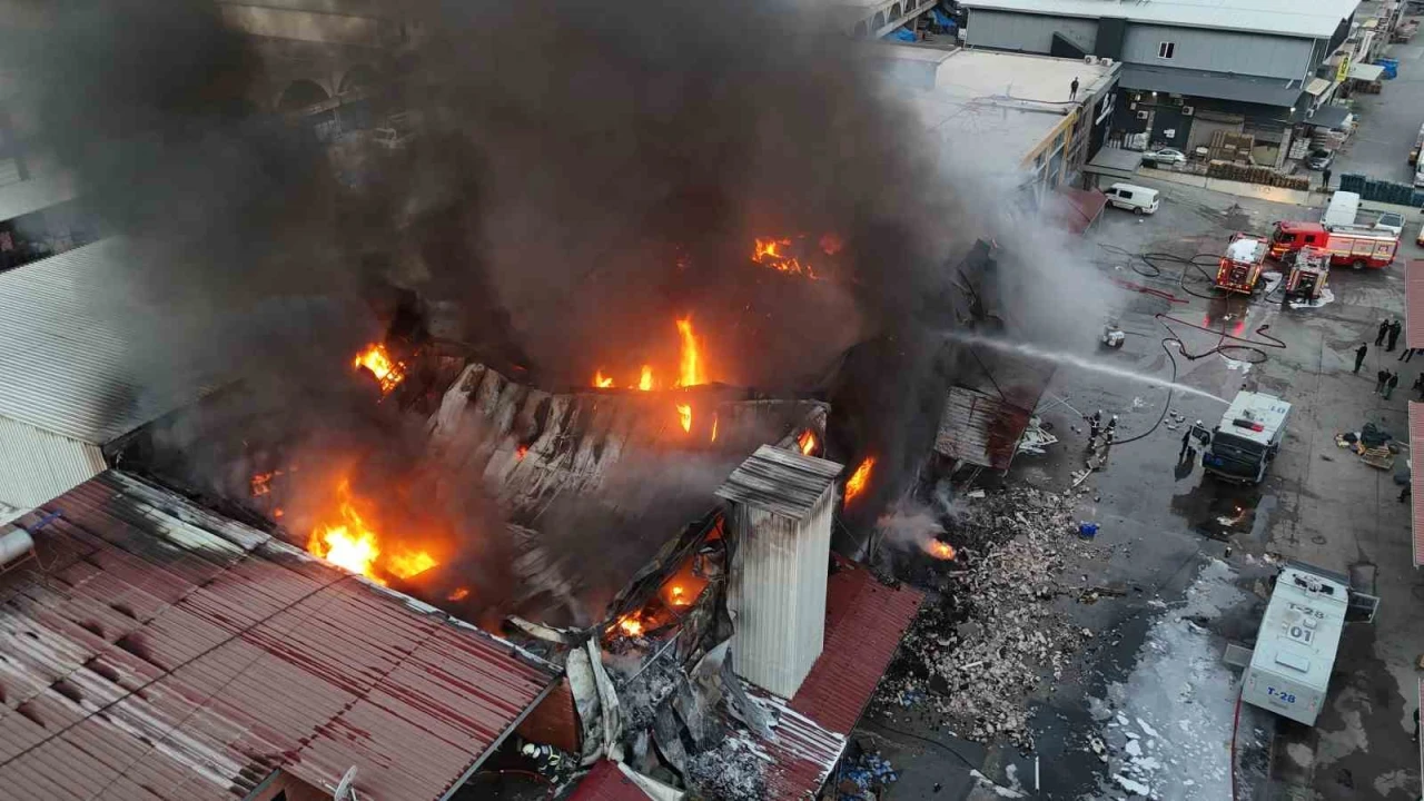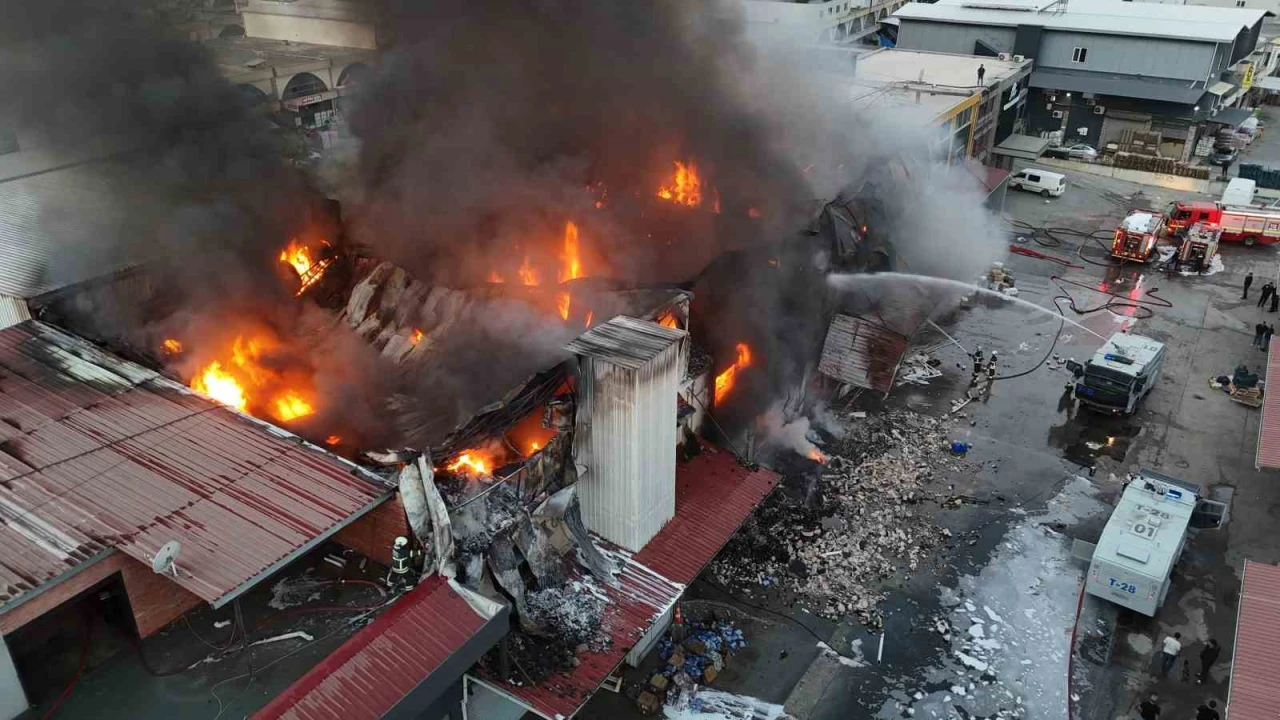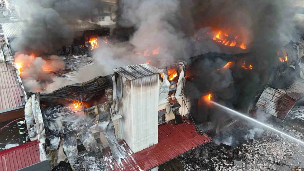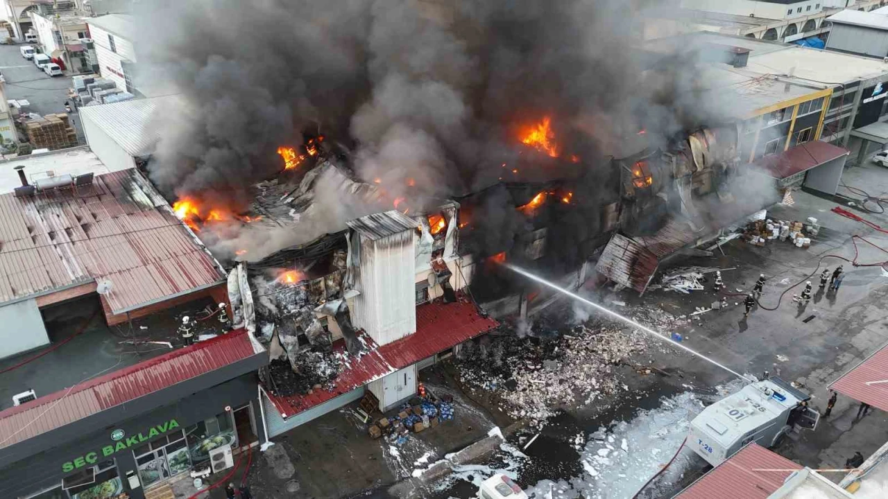 Söndürme çalışmalarına Toplumsal Olaylara Müdahale Aracı (TOMA) da katıldı. Bitişik iş yerlerine de sıçrayan yangını söndürme çalışmaları sürerken yangın, dron ile havadan görüntülendi.