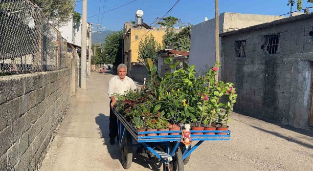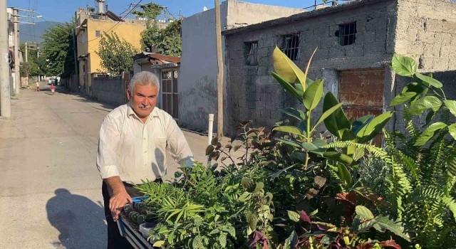 Osmaniye’de 11 yaşından beri seyyar satıcılık yapan 57 yaşındaki Yakup Özdemir, çocukluğundan beri bahçesine hobi olarak ekimini yaptığı çiçekleri seyyar tablasına koyarak mahallelerde satıyor.