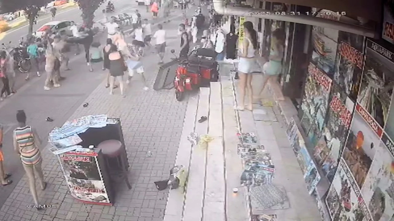 Dükkan önünde oturan İngiliz turistler ve bir işletme çalışanı arasında başlayan konuşma bir anda kavgaya dönüştü. Esnafın etrafını çeviren 6 İngiliz turistler önce esnafa kafa attılar sonra yumruklamaya ve yerde tekmelemeye başladılar. Çevre esnaf, olaya müdahale edince kavga büyüdü. Bir İngiliz turistin yerde bulunan parke taşını alarak esnafa attığı gözlenirken, esnaf ise kendilerini şemsiyeler ile savundu.