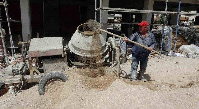 Sabah saatlerinde mesailerine başlayan inşaat işçileri, sıcaklığın daha fazla hissedildiği öğle saatlerinde de çalışmaya devam ediyor. İşçiler, başlarına şapka, bez takarak sıcaklıktan korunmaya çalışıyor. İşçilerin soğuk su içerek ve başlarına su dökerek serinlemeye çalışıyor.