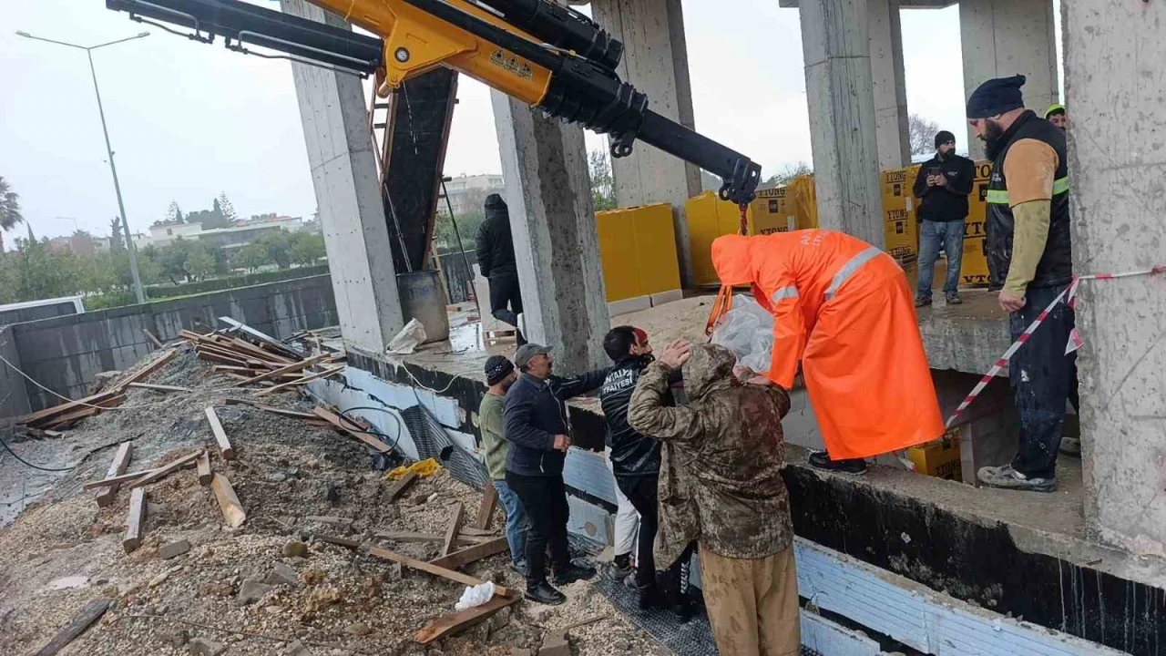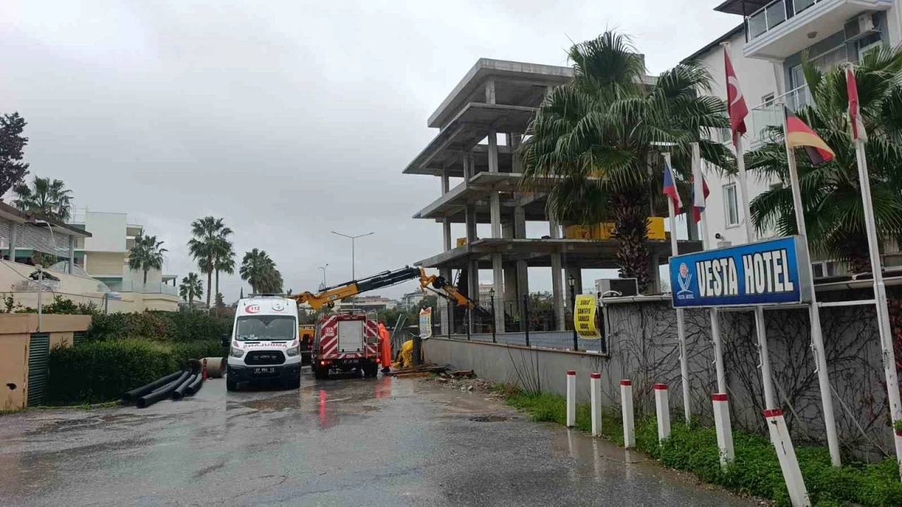 Olay, Side Mahallesi 610 Sokak’ta bir otel inşaatında yaşandı. Edinilen bilgiye göre, bir işçinin yaklaşık 1,5 metre yükseklikten düştüğü ihbarı Antalya Büyükşehir Belediyesi İtfaiyesi Manavgat Birimi ve 112 sağlık ekiplerini alarma geçirdi. Olay yerine gelen ekipler, zeminde işçinin düştüğü yere ulaşırken, sırtüstü düştüğü belirlenen Cafer Kaygın isimli işçi, sağlık ekiplerinin yaptığı kontrolün ardından itfaiyeye ait cankurtaran hasta taşıma sedyesine sıkıca bağlandı. İnşaata ait vinç yardımıyla yukarı çıkarılan Kaygın, ambulansla Özel Akdeniz Hastanesi’ne kaldırılarak tedavi altına alınırken hayati tehlikesinin bulunmadığı bildirildi.