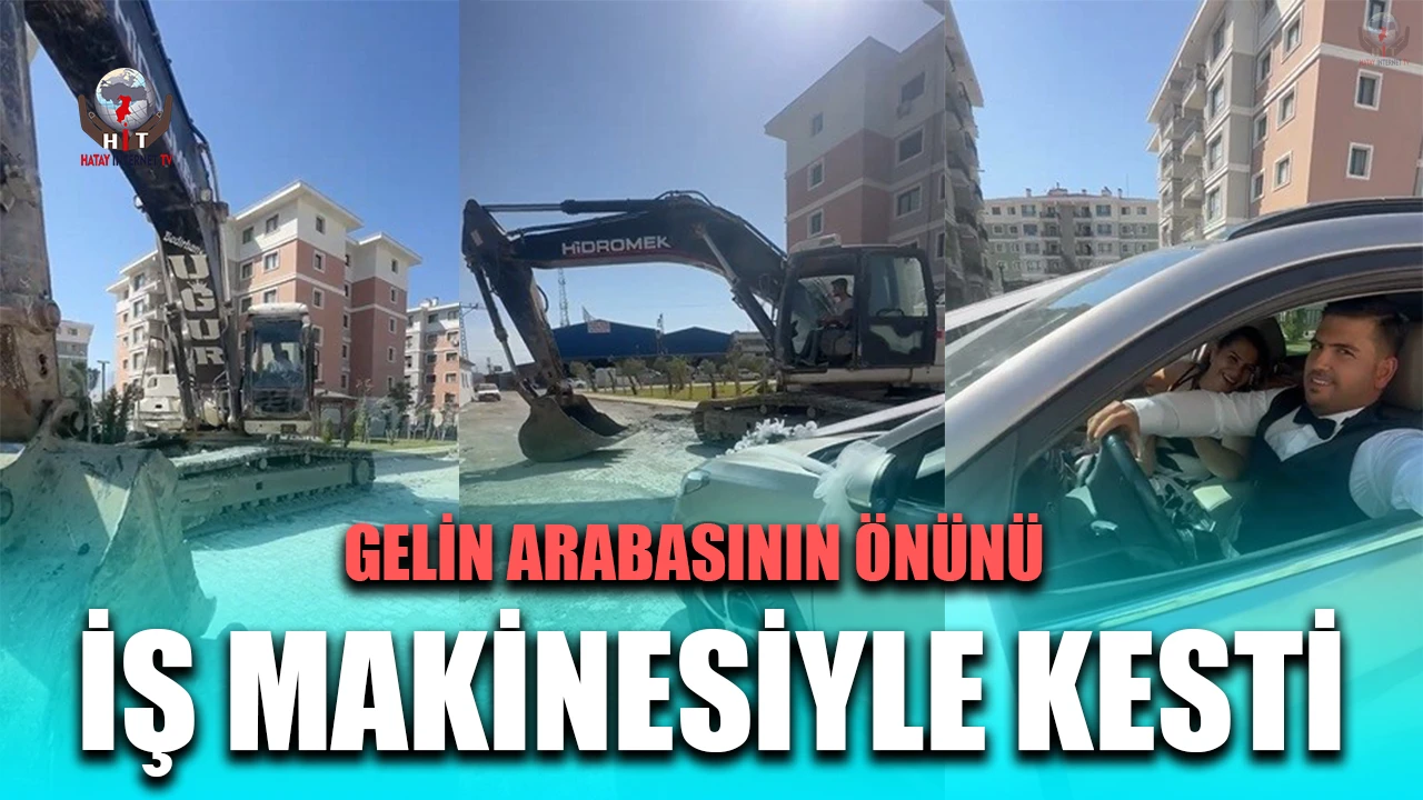 HATAY (İHA) - Hatay’da operatör Uğur Hüsnüoğlu’nun iş makinesiyle gelin arabasının yolunu kestiği anlar sosyal medyada yüzleri gülümsetti.