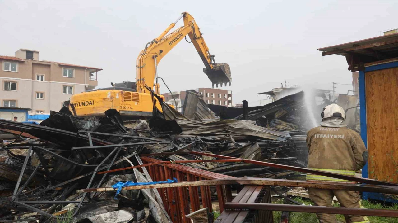 HATAY’IN DEFNE İLÇESİNDE ALEVLERE TESLİM OLAN İŞÇİLERİN KALDIĞI 2 KATLI YATAKHANE, KULLANILAMAZ HALE GELDİ.