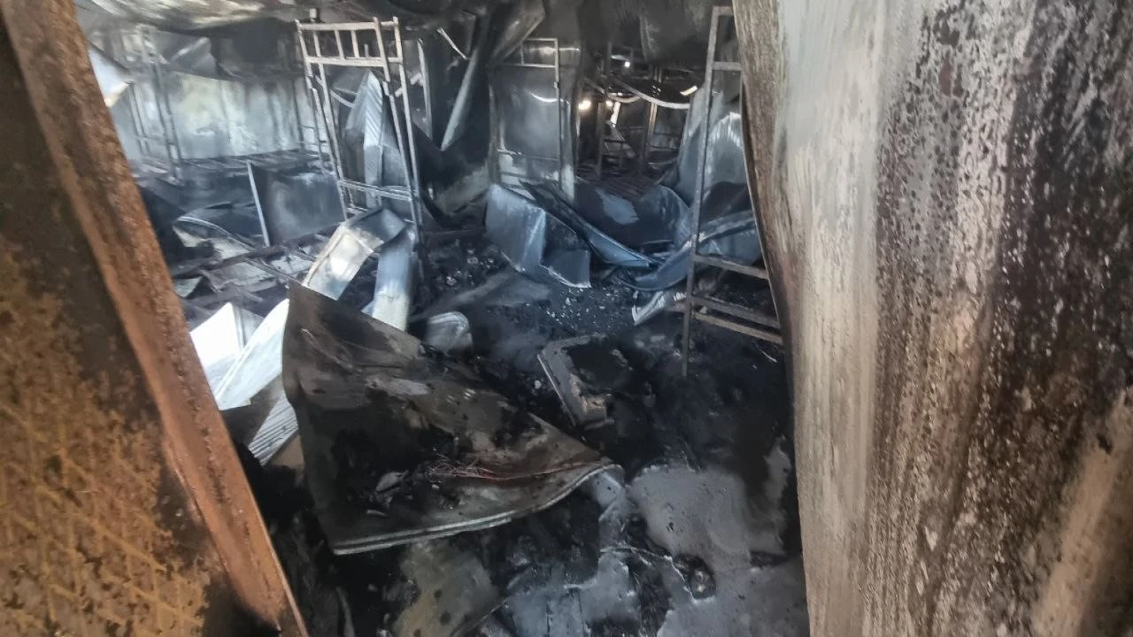ADANA'NIN KOZAN İLÇESİNDE İŞÇİLERİN KALDIĞI KONTEYNER ALANINDA ÇIKAN YANGIN KORKUYA NEDEN OLDU.