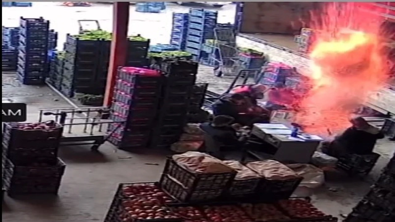 ANTALYA’NIN ALANYA İLÇESİ SEBZE VE MEYVE TOPTANCI HALİNDE ISINMAK İÇİN YAKILAN KOVANIN PATLAMASI SONUCU İŞÇİLER PANİK YAŞADI.
