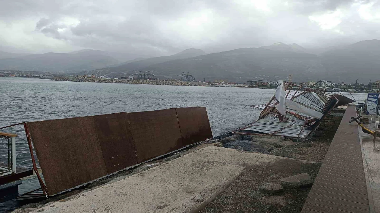 Hatay’da etkili olan fırtına İskenderun Belediyesi’nin Ramazan ayı için kurduğu çadırlarını denize uçurdu. Vatandaşların çadırlar uçmasın diye verdiği mücadele ise kameraya yansıdı.
