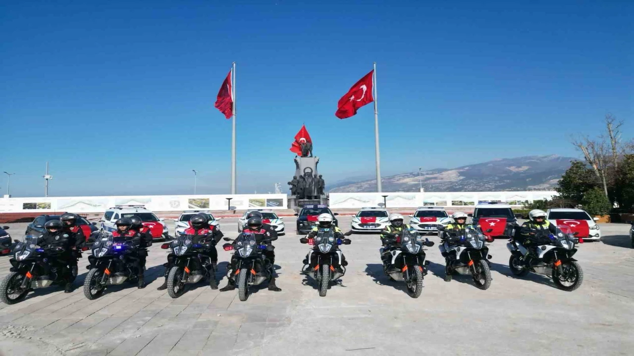 HATAY (İHA) - Hatay’ın İskenderun İlçe Emniyet Müdürlüğüne tahsis edilen 23 aracın Atatürk Anıt alanında tanıtımı gerçekleştirildi. Çeşitli birimlerde kullanılacak olan motosiklet ve araçlarla şehir turu atıldı.