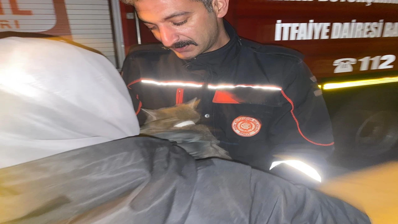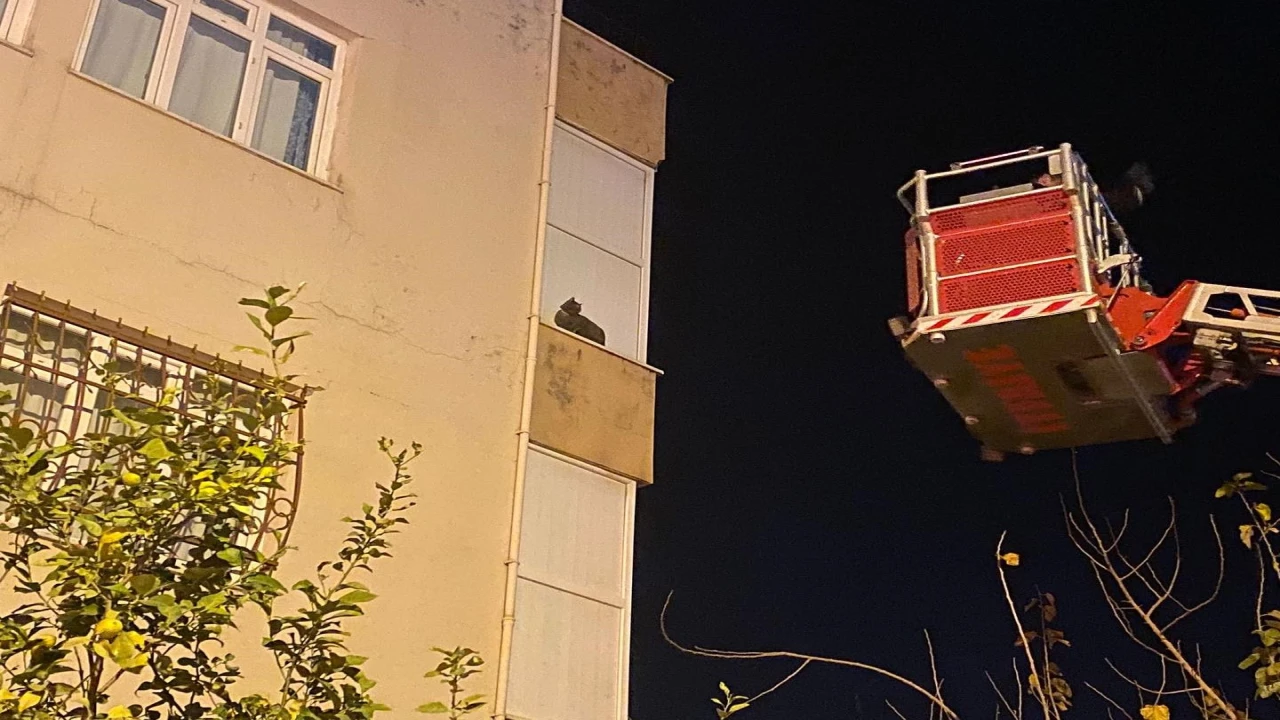 İskenderun’da balkonda mahsur kalan kediyi itfaiye kurtardı