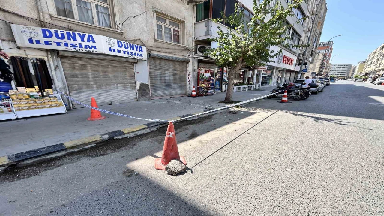 Hatay’ın İskenderun ilçesinde, eski bir binadan kopan taş parçaları kaldırıma düştü. Olayda yaralanan olmazken, zabıta ekipleri çevrede güvenlik önlemi aldı.