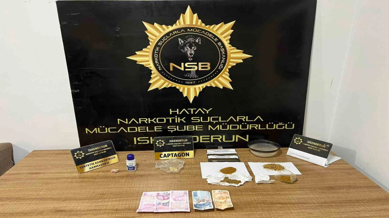 Emniyet Müdürlüğü ekipleri tarafından uyuşturucu madde kullanımının ve ticaretinin önlenmesine yönelik yürütülen çalışmalar kapsamında İskenderun ilçesinde bir ikamete operasyon düzenlendi. İkamette yapılan aramada; 34 gram sentetik kannabinoid, 18 adet Captagon hap, 7,45 gram sentetik kannabinoid ham maddesi, aseton maddesi ile uyuşturucu ticaretinden elde edildiği değerlendirilen 750 TL nakit para ele geçirildi.