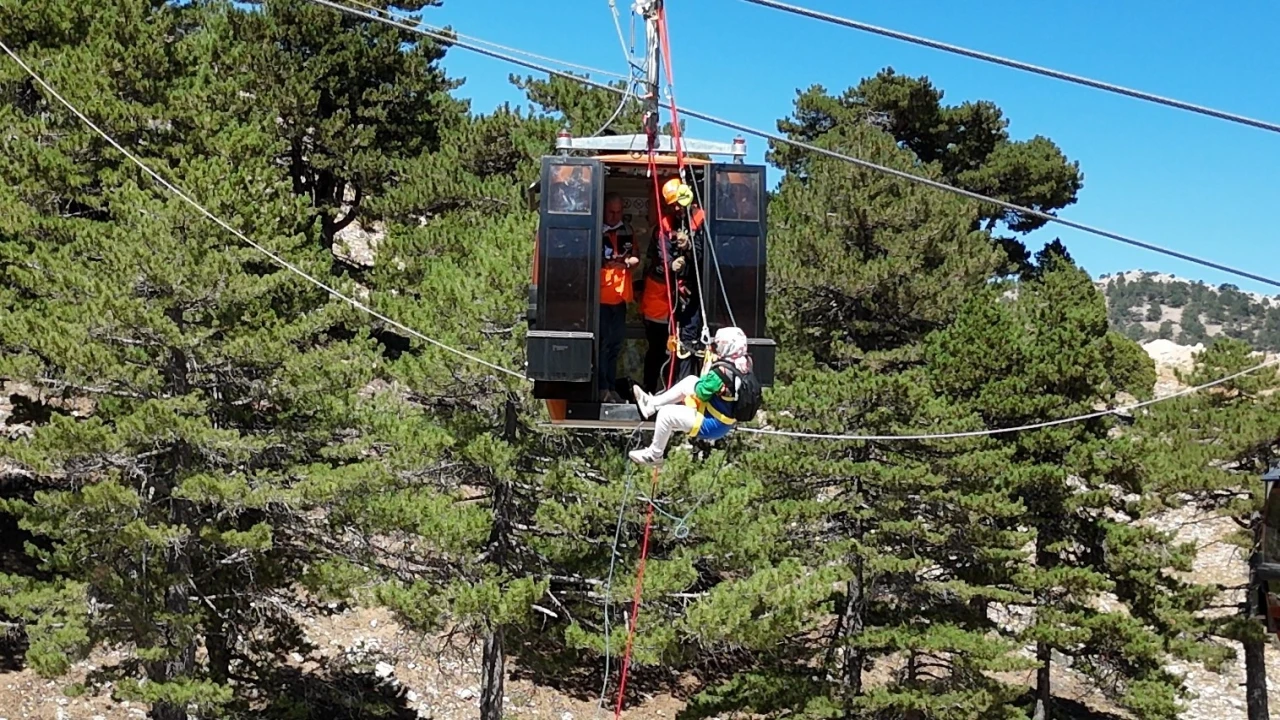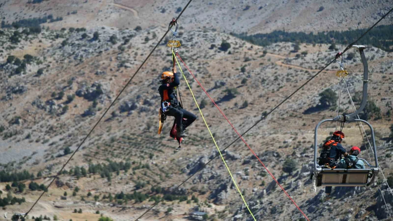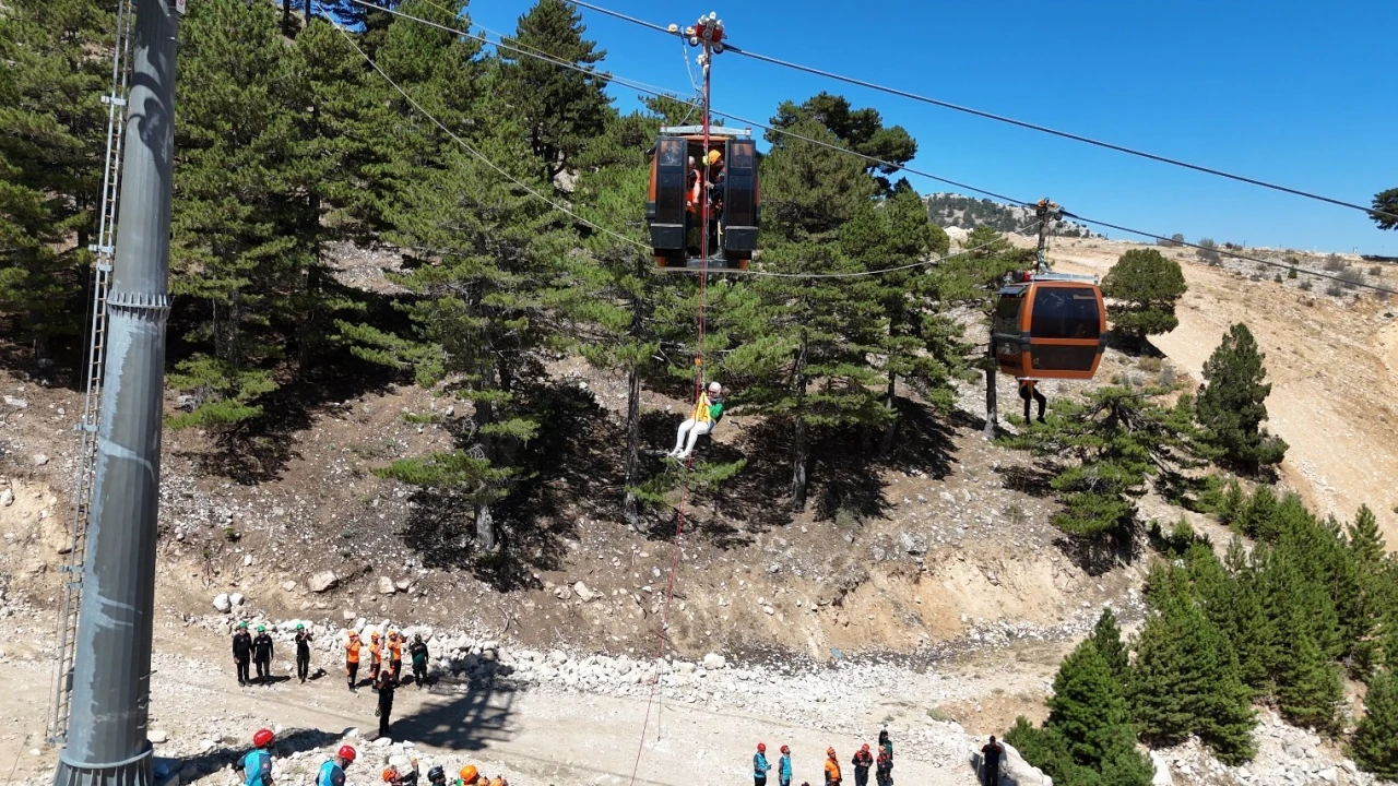 Isparta Davraz Kayak Merkezi’nde gerçekleştirilen tatbikata 26 ilden sivil toplum kuruluşları katılırken, senaryo gereği teleferikte mahsur kalan vatandaşlar gerçeğini aratmayan bir operasyonla kurtarılarak güvenli alana ulaştırıldı.