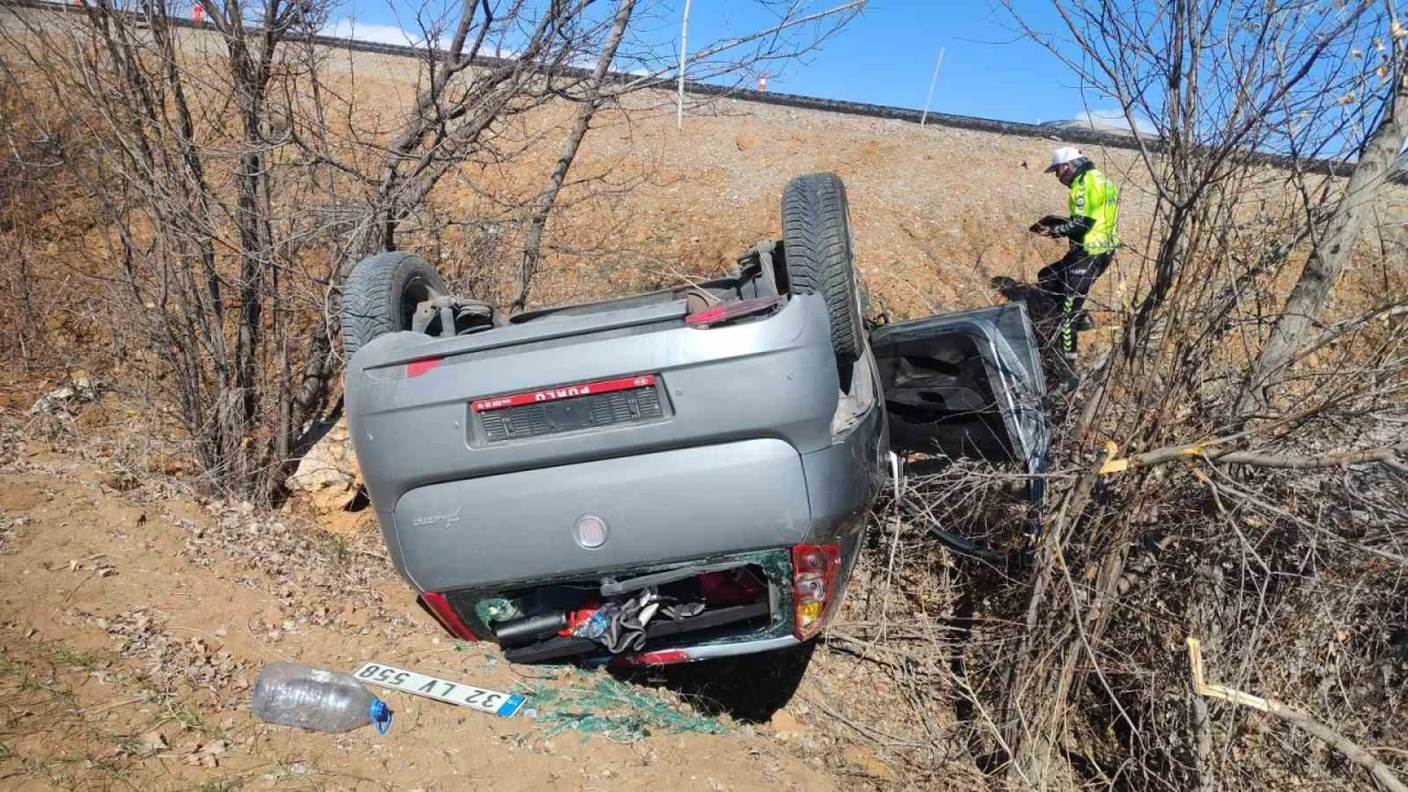 Isparta’da sürücüsünün kontrolünden çıkan otomobilin takla atarak şarampole yuvarlanması sonucu meydana gelen kazada sürücü yaralandı.