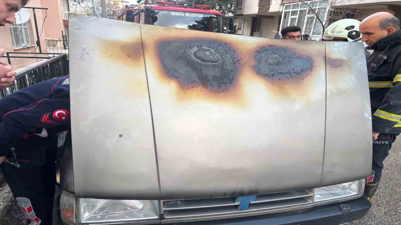 Yangın, İstiklal Mahallesi 1116. Sokak’ta meydana geldi. Edinilen bilgilere göre sokak üzerinde park halinde bulunan Mehmet A. K.’ya ait Tofaş marka otomobilin motor kısmından henüz bilinmeyen bir nedenle dumanlar yükselmeye başladı. Durumu fark eden çevre sakinleri, olayı 112 Acil Çağrı Merkezi’ne bildirerek yardım istedi. İhbar üzerine olay yerine polis ve Isparta Belediyesi İtfaiye Müdürlüğü ekipleri sevk edildi. Kısa sürede aracı saran alevler, itfaiye ekiplerinin zamanında müdahalesiyle çevredeki diğer araçlara ve binalara sıçramadan kontrol altına alınarak söndürüldü. Yangın sonrası otomobilde maddi hasar meydana geldi. Soğutma çalışmalarının tamamlanmasının ardından polis ekipleri olay yerinde inceleme başlatırken, yangının çıkış nedeninin yapılacak teknik incelemenin ardından netlik kazanacağı öğrenildi.